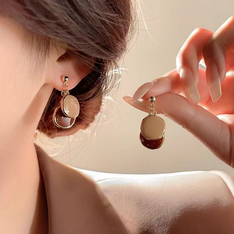 Product information:Processing Technology: HandmadeColor: Maillard disc-shaped earringsApplicable people: womenMaterial: AlloyModeling: OtherPopular elements: NoneStyle: Japan and South Korea