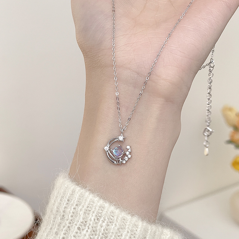 Product information:Color: Starfall necklace Applicable people: women Pendant: 925 silver Chain style: O-shaped necklace Material: 925 silver Popular elements: Moon, star Style: fashion OL SIZE: Height 16.8mm, width 13.9mm