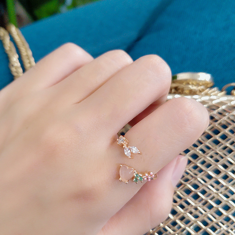 Material: CopperStyle: Korean version, Korean style / Korean styleModeling: FlowersTreatment process: electroplatingInlay material: alloy inlaid artificial gem / semi precious stoneColor: wine red love, white loveSize: adjustable opening
