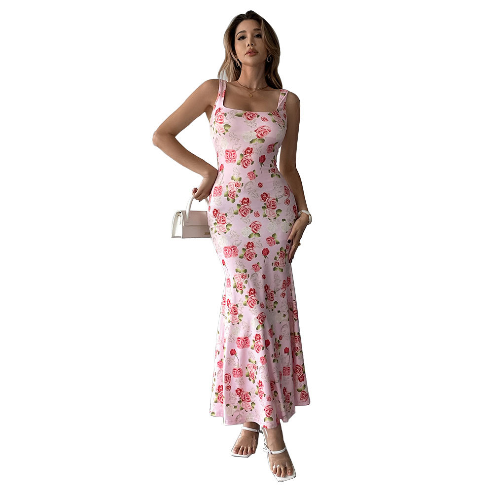 Product information: Pattern: Flowers Skirt type: hip skirt Color: Pink Size: S,M,L,XL Style type: fresh and sweet Popular elements: slim fit Style: Sling style Fabric name: Polyester Style: sweet style