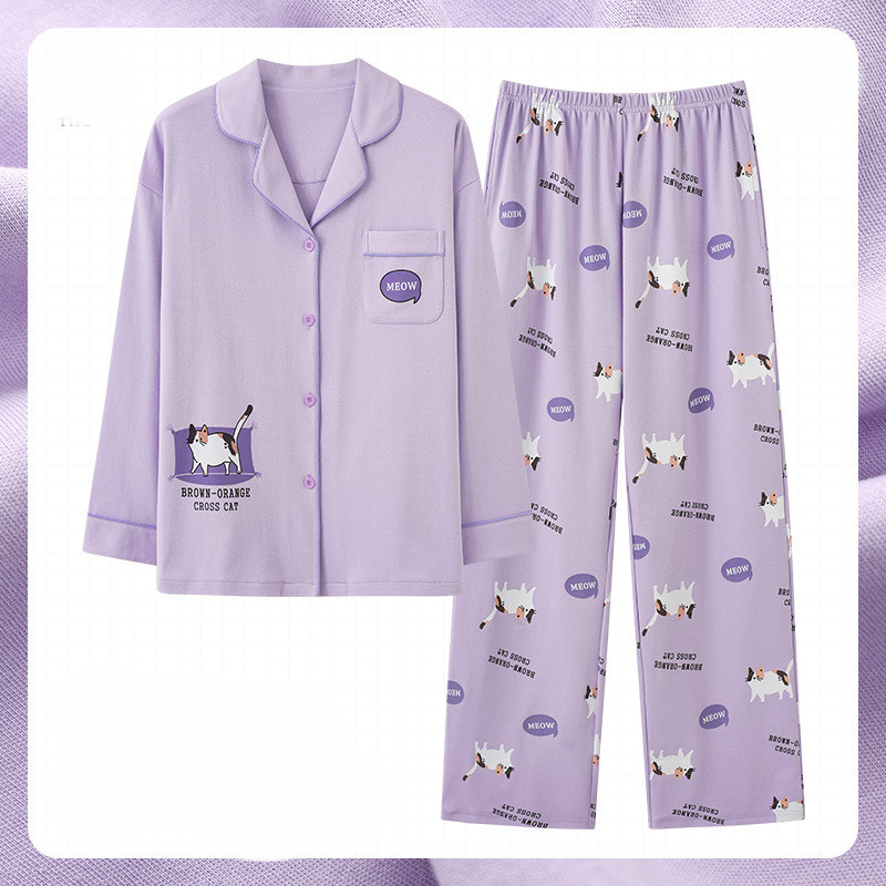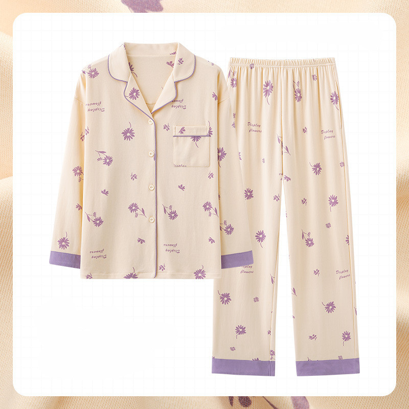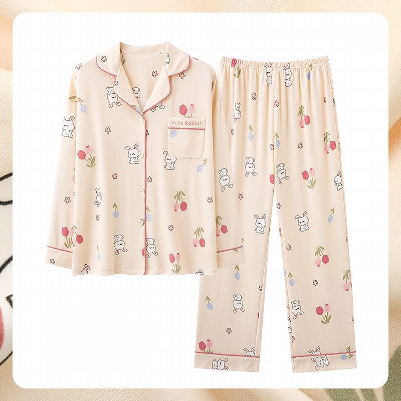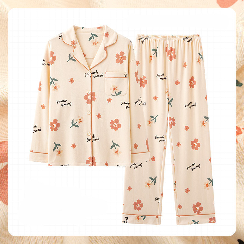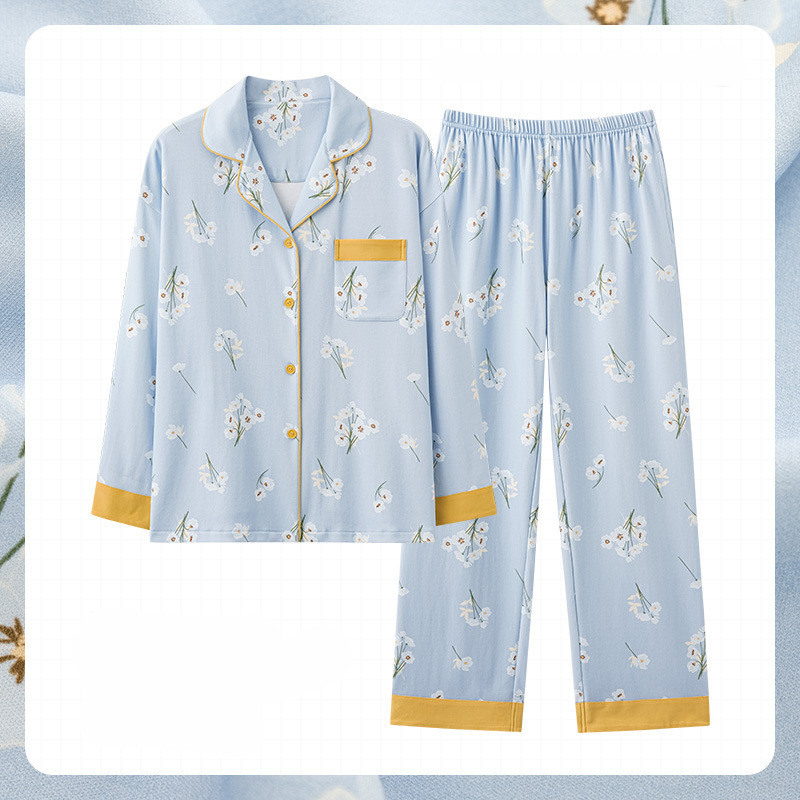 Women's Fashion Casual Cotton Long-sleeved Home Wear Set