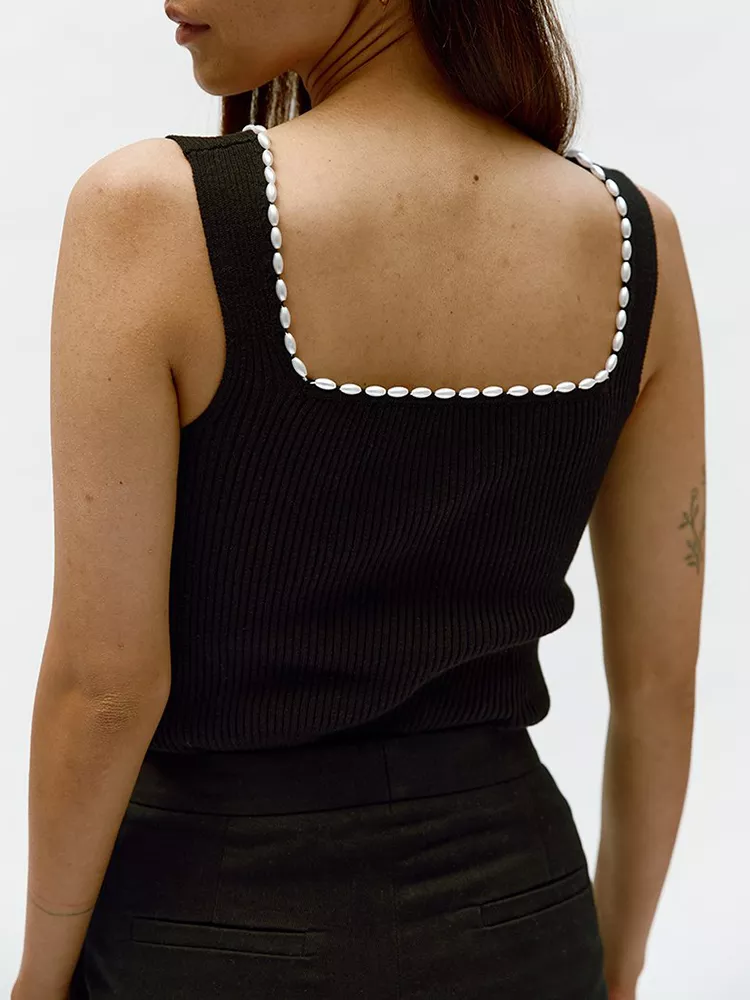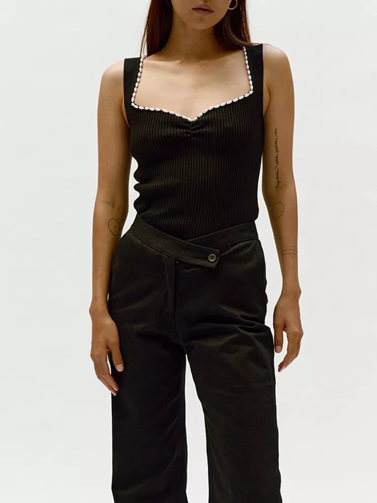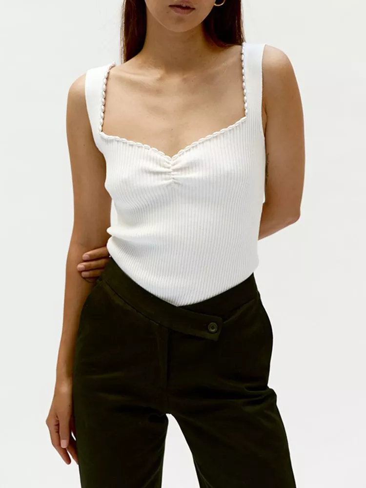 Women's Niche Sweetheart Pearl Collar Knit Vest Sling