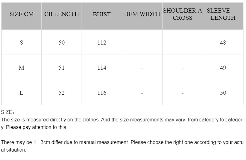 1. Asian sizes are 1 to 2 sizes smaller than European and American people. Choose the larger size if your size between two sizes. Please allow 2-3cm differences due to manual measurement. 2. Please check the size chart carefully before you buy the item, if you don't know how to choose size, please contact our customer service. 3.As you know, the different computers display colors differently, the color of the actual item may vary slightly from the following images.