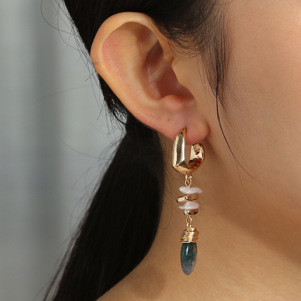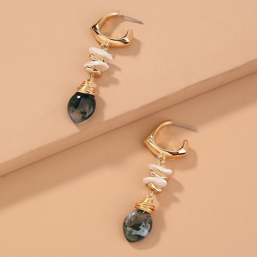 Long Wild Natural Agate Earrings