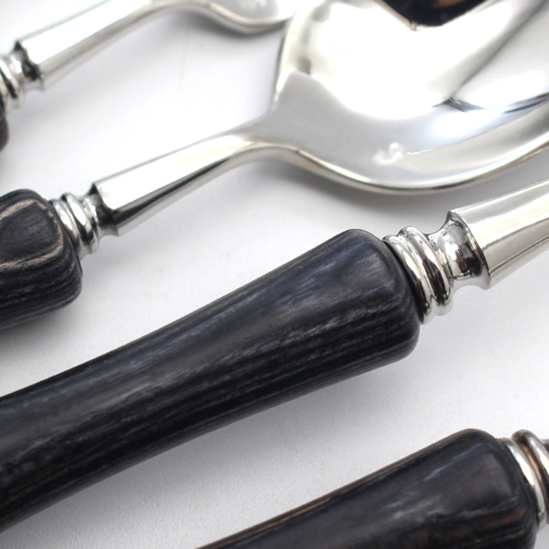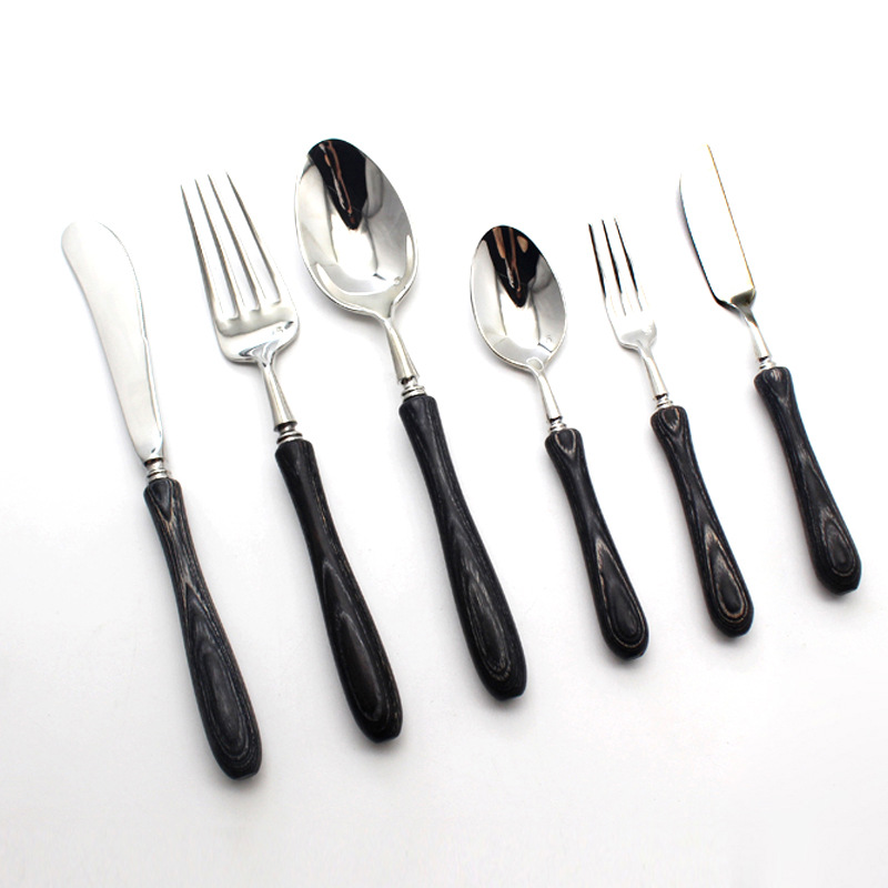 A black wood knife, a black wood fork, a black wood spoon, a black wood tea spoon, a black wood cake fork, a black wood butter knife, a log knife, a log fork, a log spoon, a log tea spoon, a log cake fork, a log butter knife, a mahogany knife, a mahogany fork, a mahogany spoon, a mahogany spoon