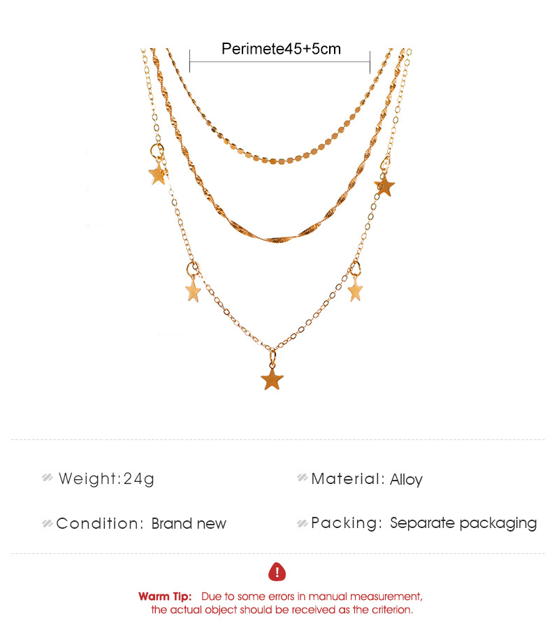 Style: European and AmericanMaterial: alloyTreatment process: electroplatingType: NecklaceStyle: Female styleShape: Stars