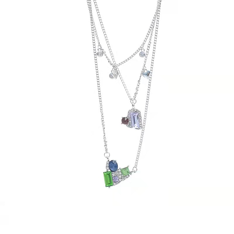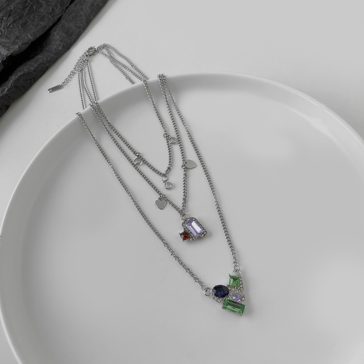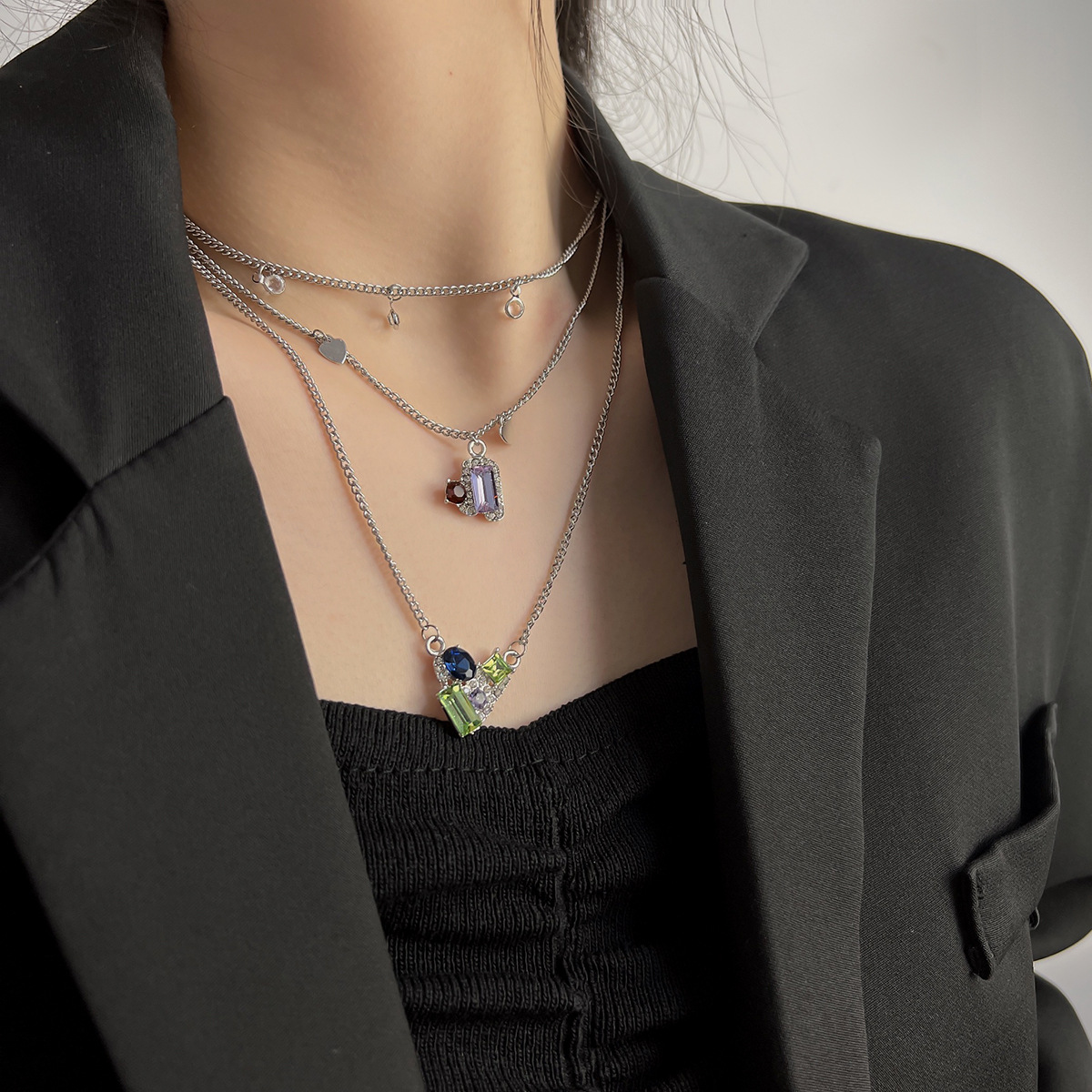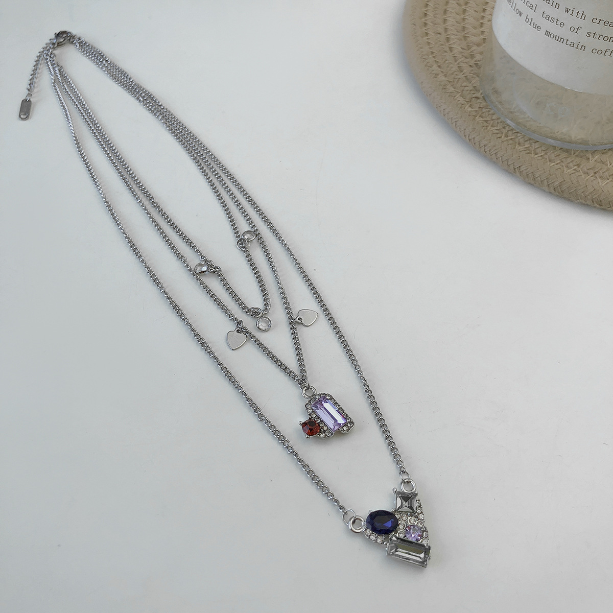 Product information:Material: SteelType: NecklaceStyle: Women'sShape: Heart shapeColor: Love Color Rhinestone Necklace FemalePacking list:Steel necklace X1