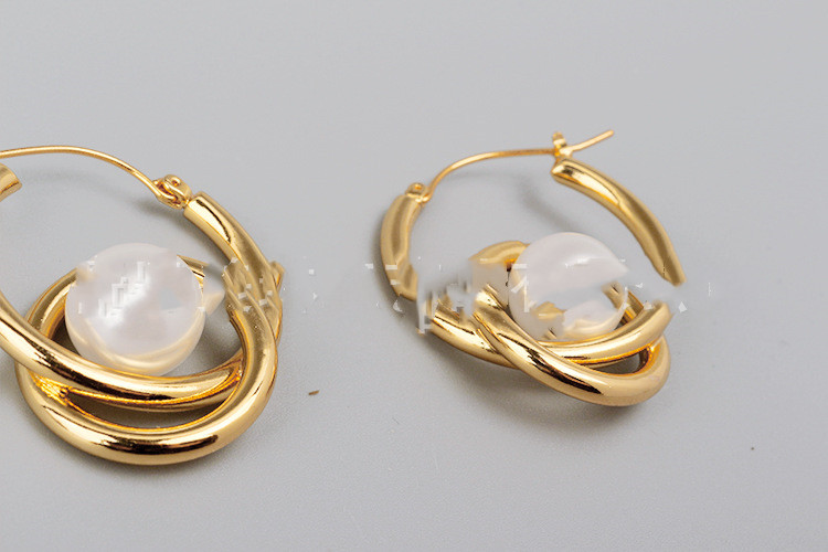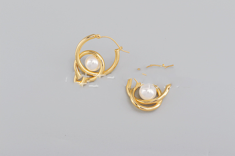 Trendy Quality Golden Pearl Cross Double Circle Earrings For Women