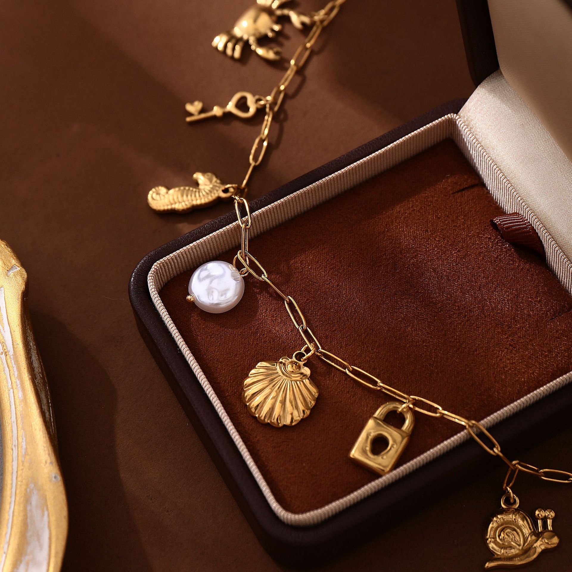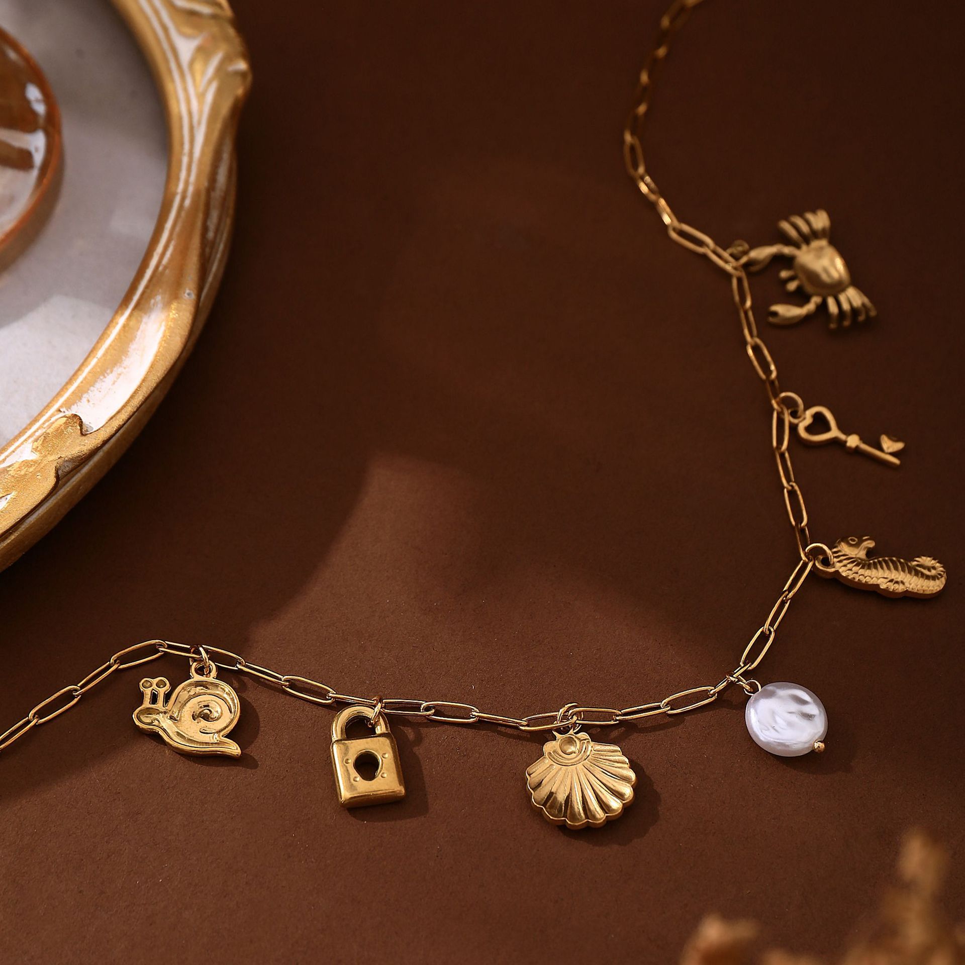 Color: crab pendant, key pendant, Seahorse pendant, pearl pendant, shell pendant, snail pendant, finished necklace, O-ring chain 1.5 mm455cm, clip chain 3 mm405cm, open end ring chain