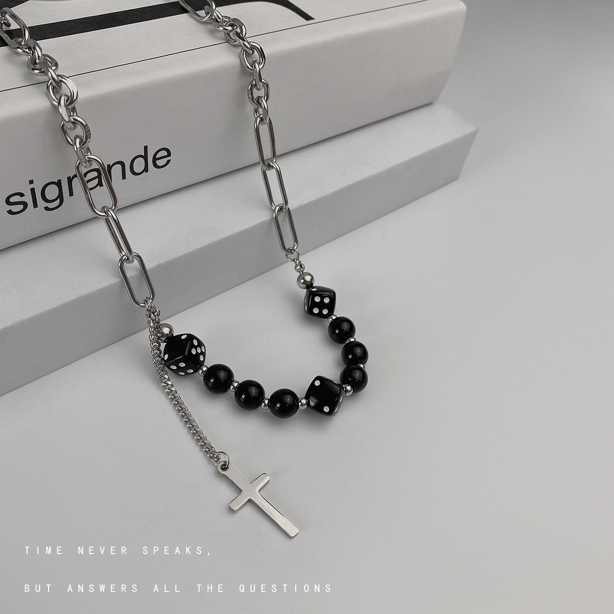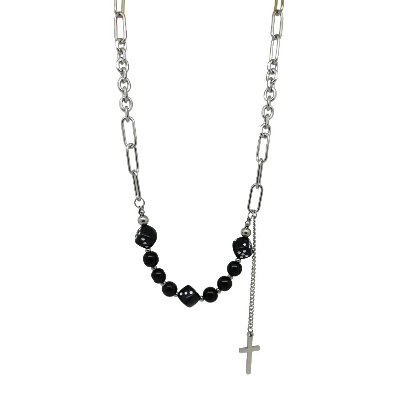 Product information:Style: nicheMaterial: titanium steelTreatment process: electroplatingType: NecklaceStyle: UnisexModeling: GeometryColor: cross dice stitching necklacePackage:Stainless Steel Necklace X1