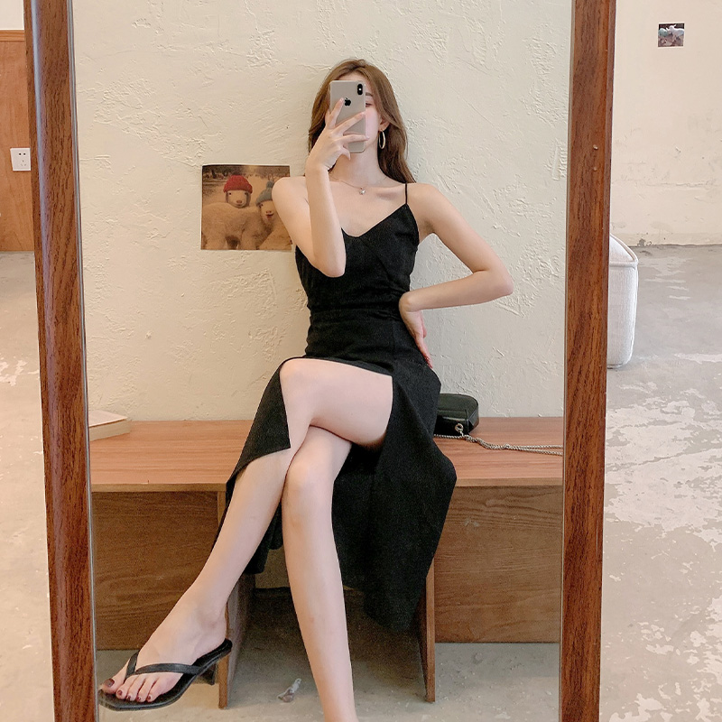 Color classification: black split sling skirt