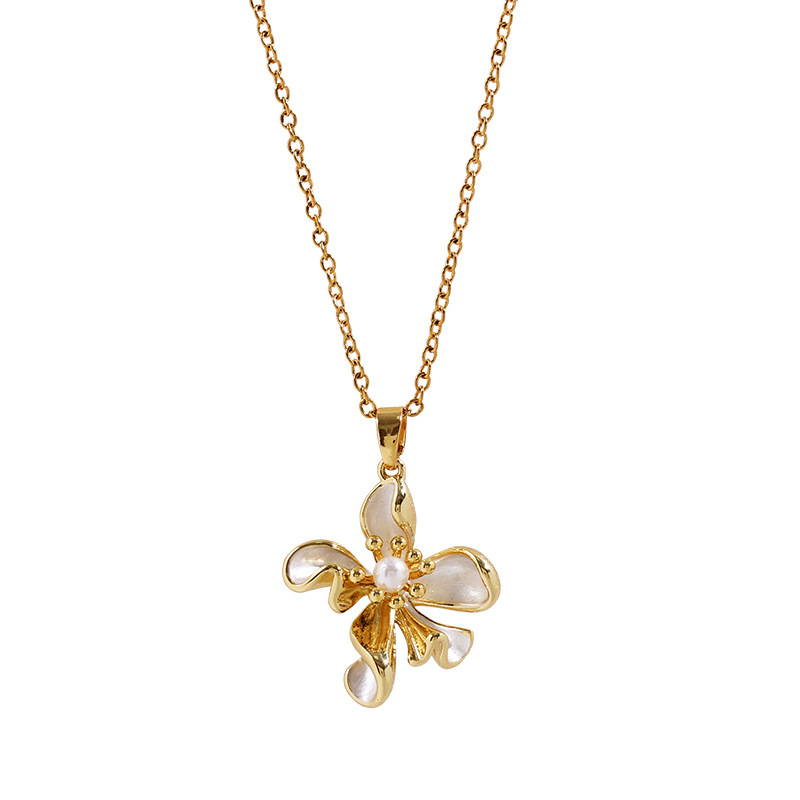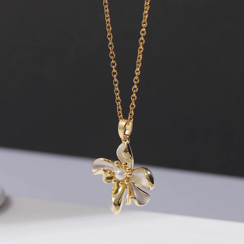 Product information:Treatment Process: Pearl Inlay Color: Flower-de-Luce necklace Pendant material: Brass Chain style: O-ring chain Material: gold-plated brass enamel Pearl Popular elements: Pearl Perimeter: 41cm (inclusive)-50cm (inclusive)