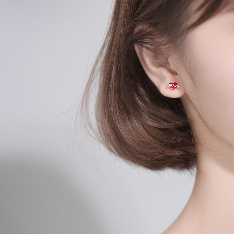 Red love ear studs