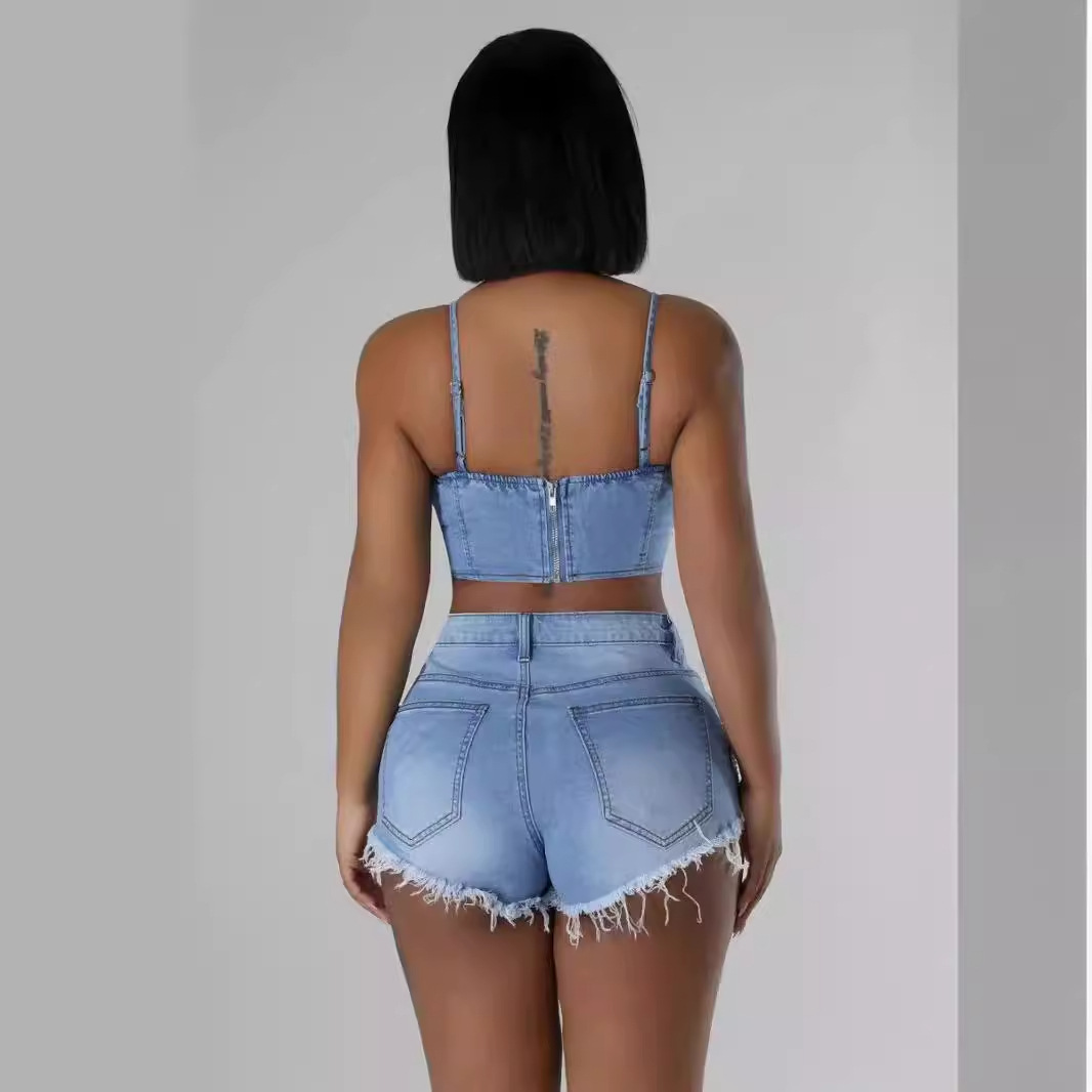 Product information: Color: blue, gray Black Size: S,M,L,XL Style type: street fashion Popular elements: chain Fabric name: denim Main fabric composition: Polyester Style: Trendy Craft: beaded