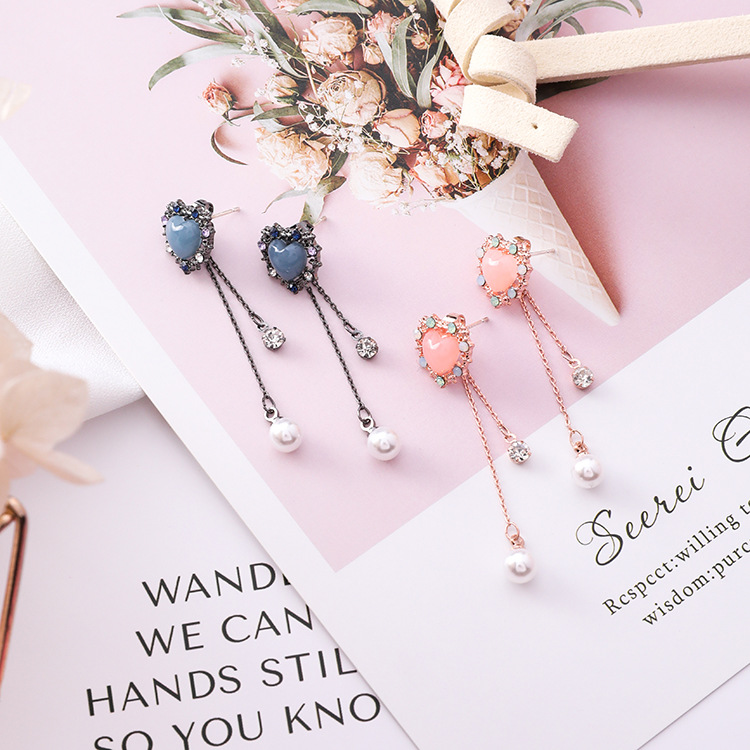 Material Alloy Style Korean Korean/Korean Style Style women's style heart shape treatment process plating Applicable gifts occasions Opening ceremony, employee benefits, trade fairs, housewarming, wedding, public relations planning, birthday, travel commemoration, anniversary celebration, awards commemoration, advertising promotion, festival, business gift packaging independent packaging plus Inlay material Alloy inlaid artificial gemstone / semi-precious stone Color A Pink (925 silver needle), B blue (925 silver needle)