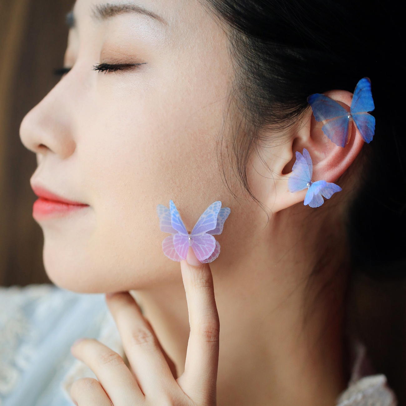 Material: tulle material butterfly, copper plated silver beads