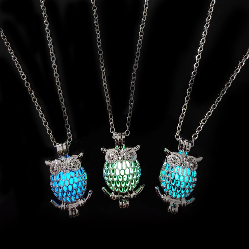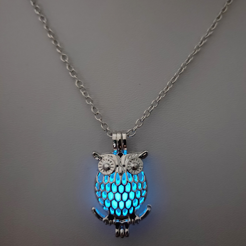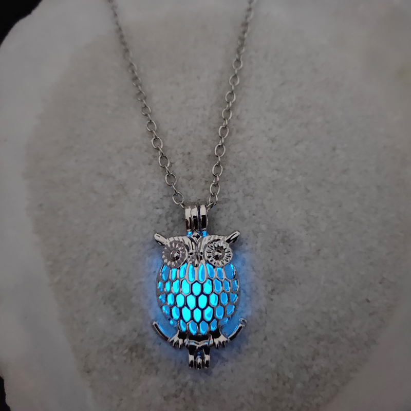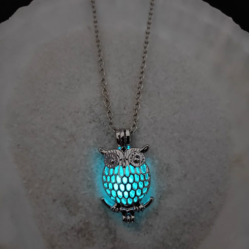 Glow-in-the-dark owl hollowed out DIY necklace