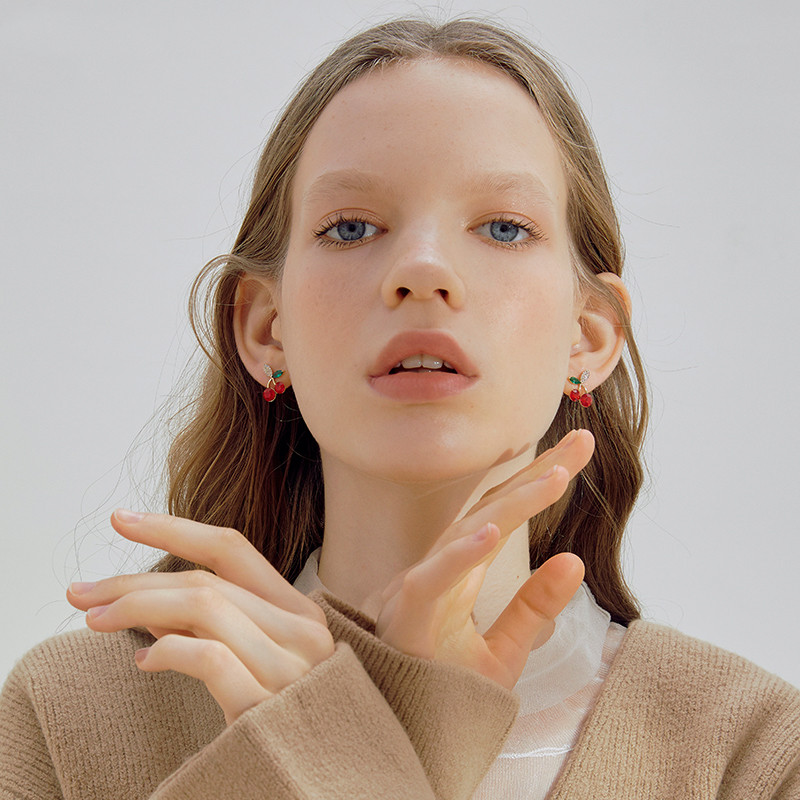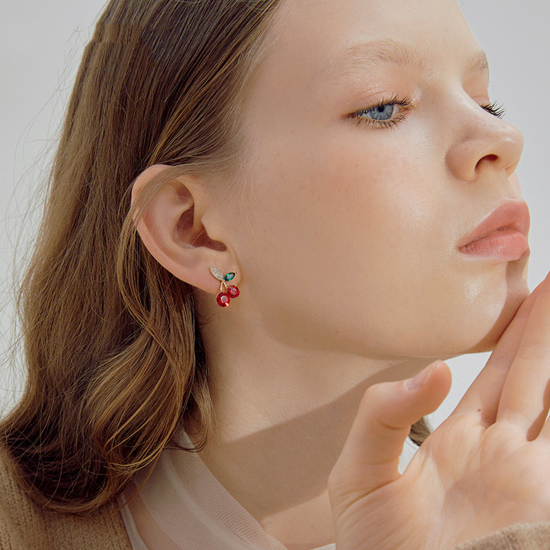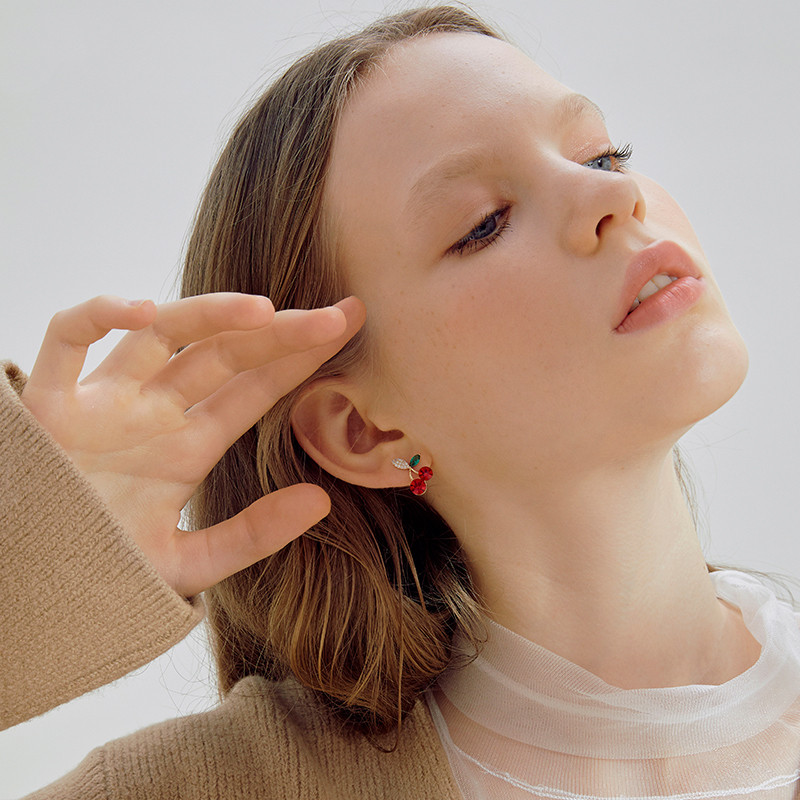Name: Little Cherry Stud EarringsSize: 1.8cm in height and 1.2cm in widthWeight: about 1.06gMaterial: alloy 925 silver needle combined into square zirconia