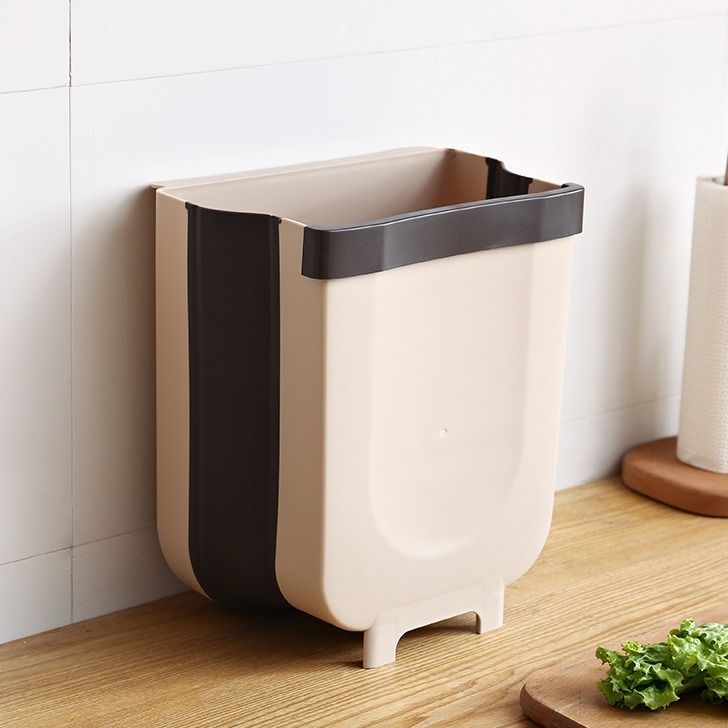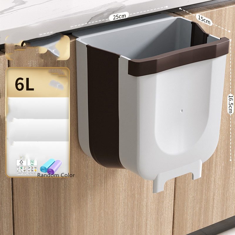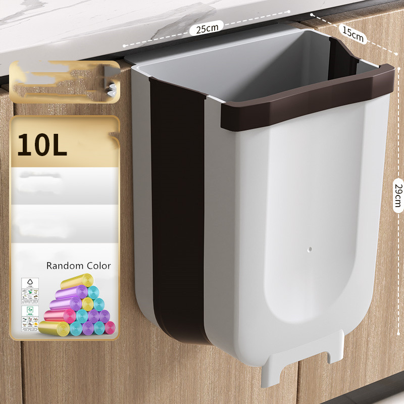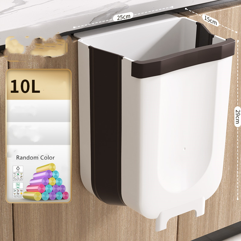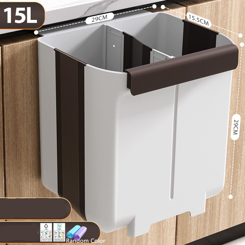Type: kitchen hanging folding trash canmaterial: plastic The proportion of new plastic materials: 60%-80% new materialsCapacity: 8LFunction: Storage barrelOpening and closing method: push typeShape: long tube