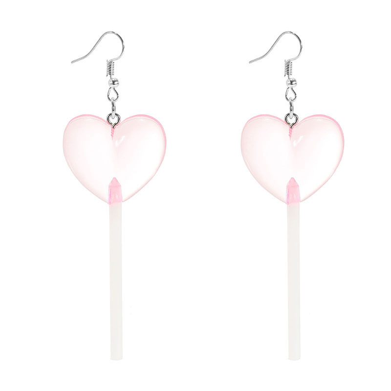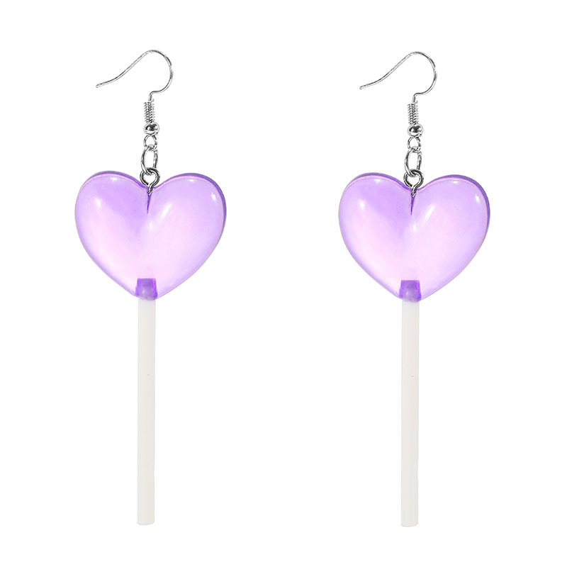 Color: 1 pair of rose transparent love lollipop earrings, 1 pair of purple transparent love lollipop earrings, 1 pair of blue transparent love lollipop earrings, 1 pair of yellow transparent love lollipop earrings, 1 pair of pink transparent love sticks Lollipop earrings, 1 pair of red transparent love lollipop earrings