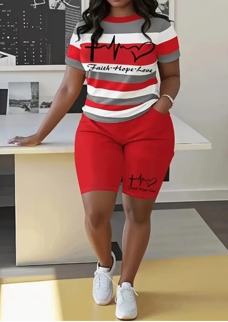 Women'S Two-Piece Set Featuring A Stylish Printed T-Shirt And Casual Shorts