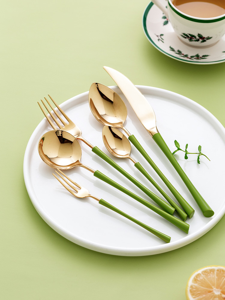 G: Aden light green gold knife, fork and spoon three-piece knife