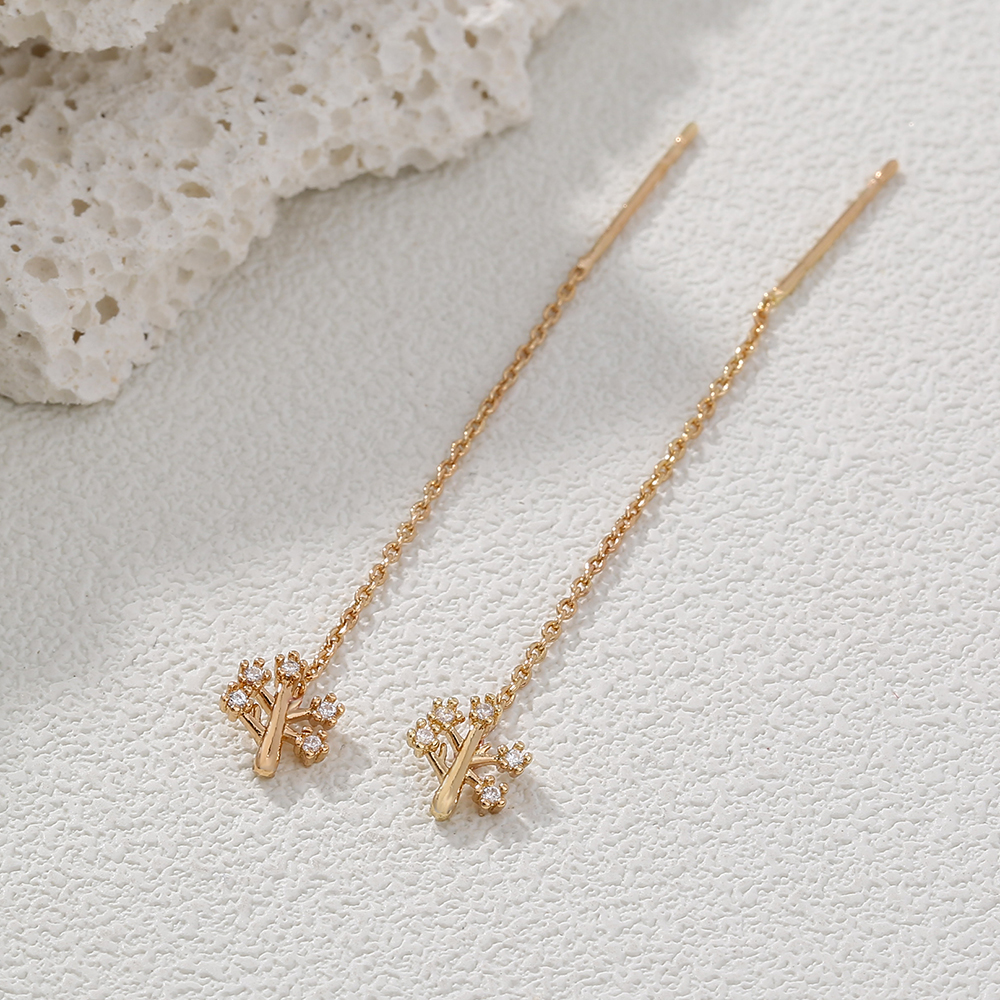 New Fashion Small Copper Life Tree Micro-zircon Fashion Earrings Long Tassel Earline High-quality Temperament Earrings Jewelry Woman