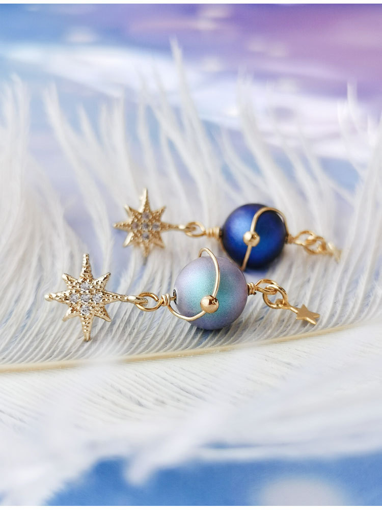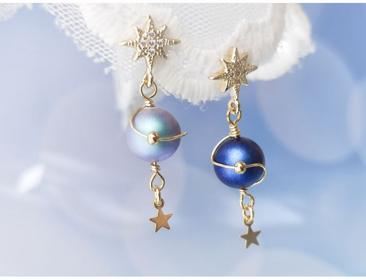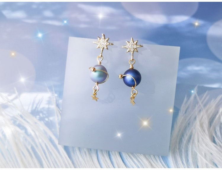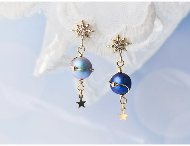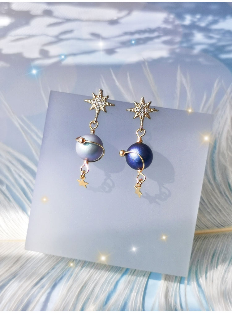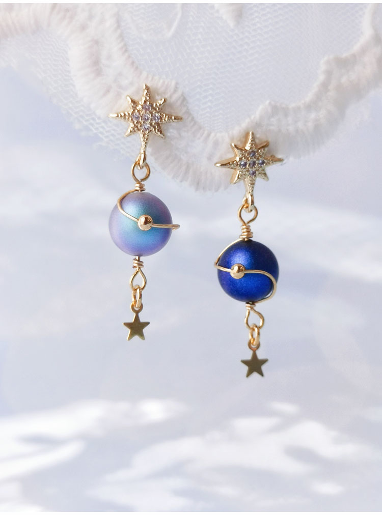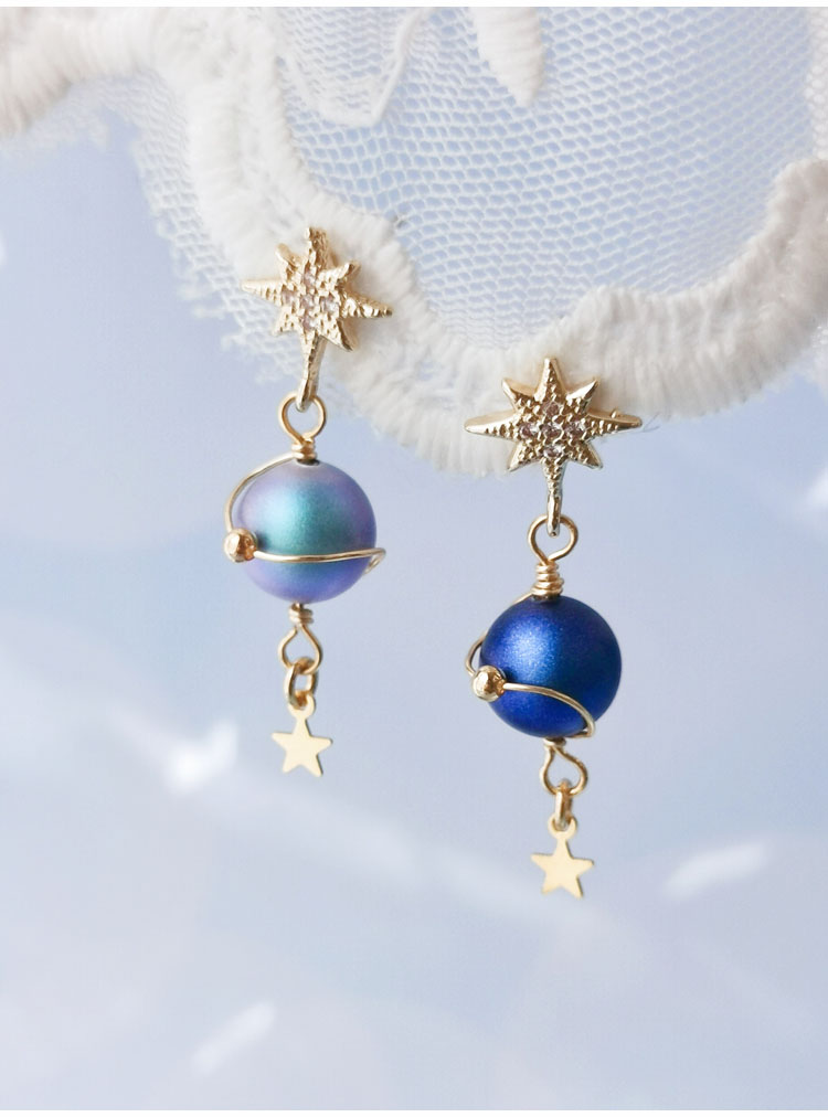 Color classification: "Lonely Planet" a pair of light blue earrings, "Lonely Planet" a pair of dark blue earrings, "Lonely Planet" one deep and one light earrings