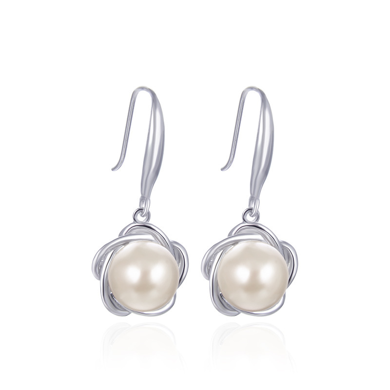European And American Fashion OL Temperament Flower Earrings S925 Silver Ring Pearl Lady Necklace Jewelry Set