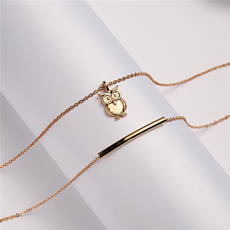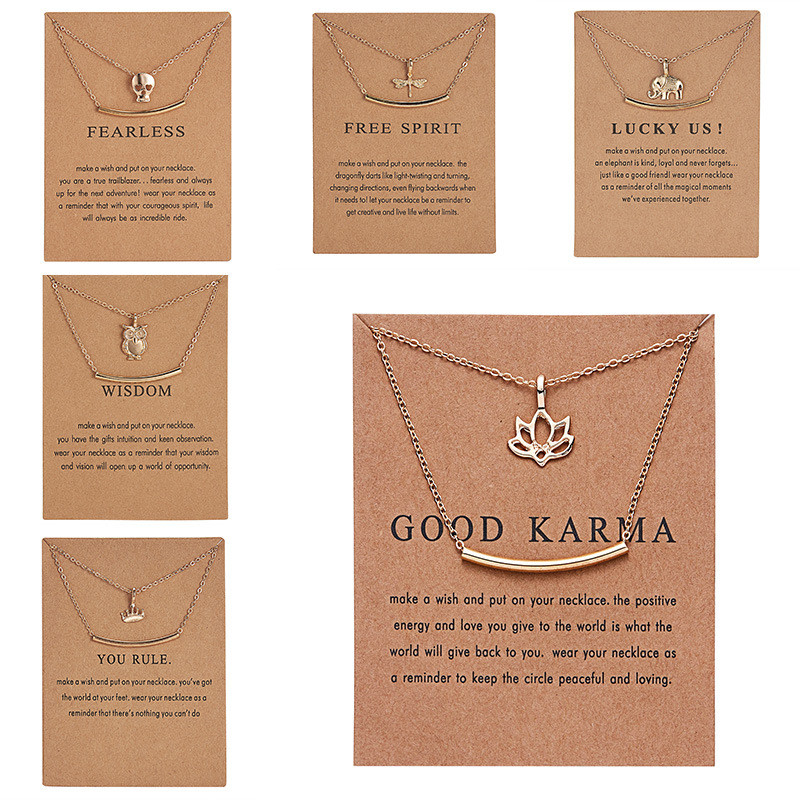 Paper Card Owl Elephant Animal Double Alloy Necklace