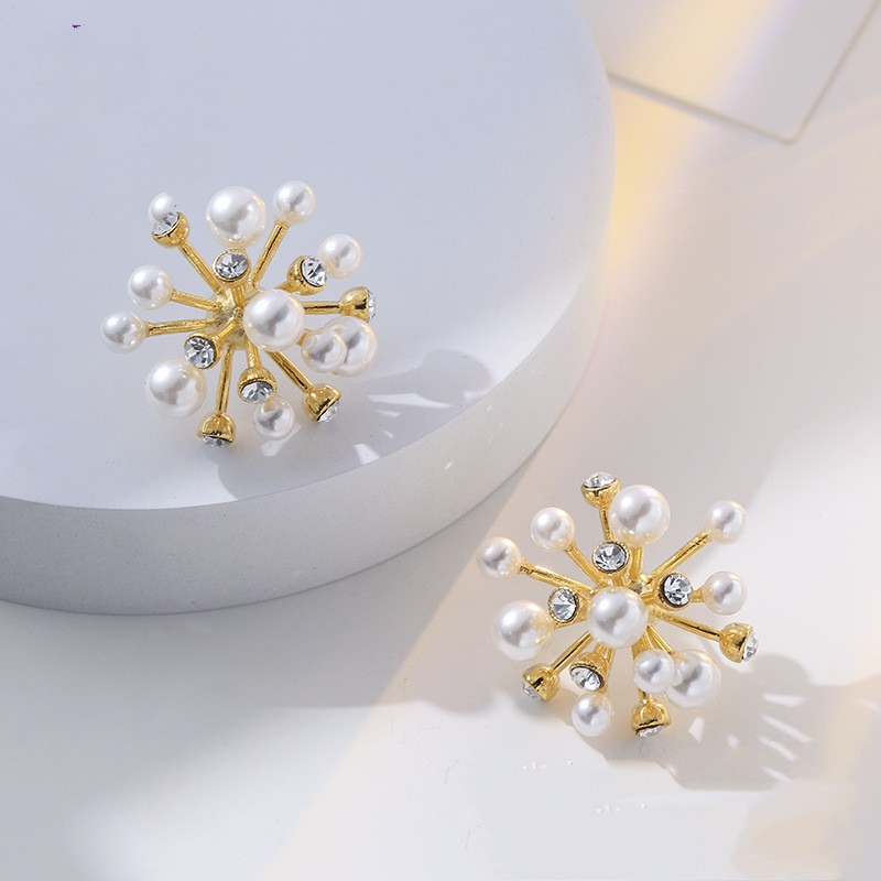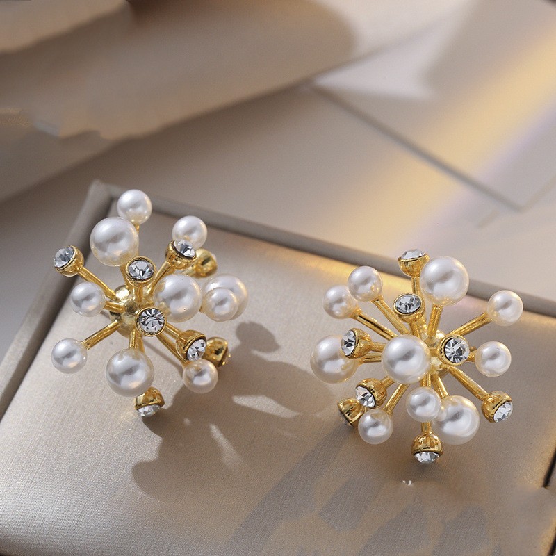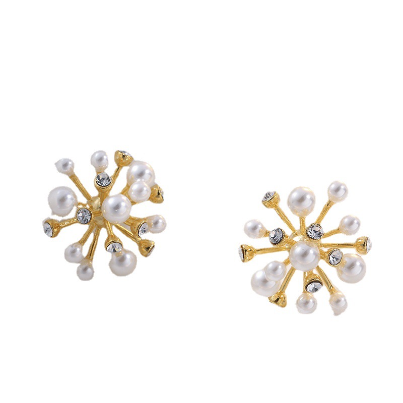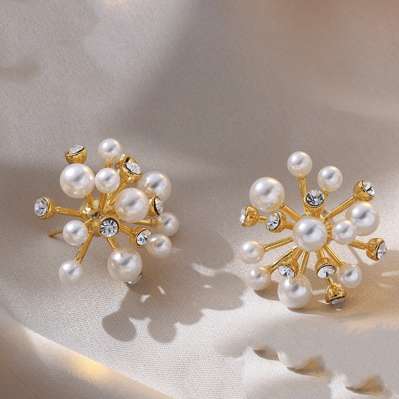 Imitation Pearl Diamond Three-dimensional Flower Stud Earrings