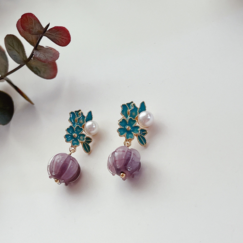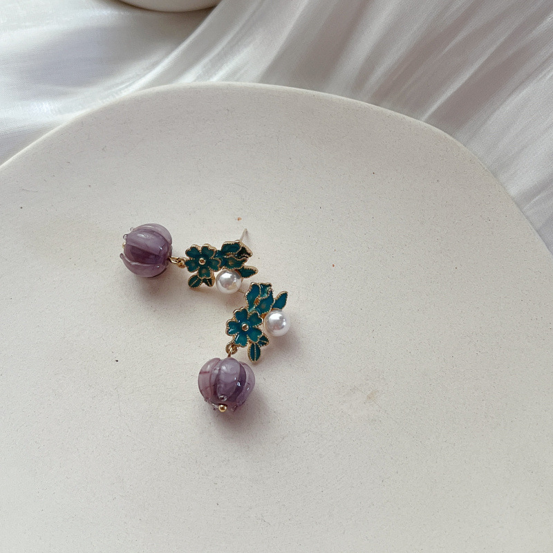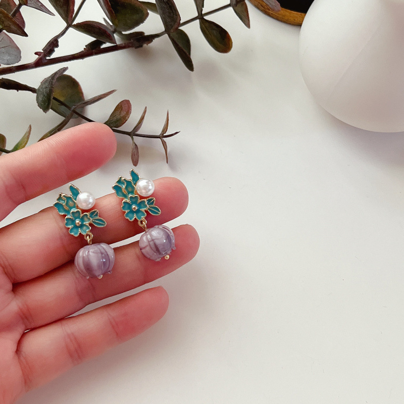 Product Information:Material: AlloyStyle: LadiesShape: floralFinish: ElectroplateColour: Purple silver pin 1.3*3.2cm,White silver pin 1.3*3.23cmPackage Contents:Earrings X1 pair