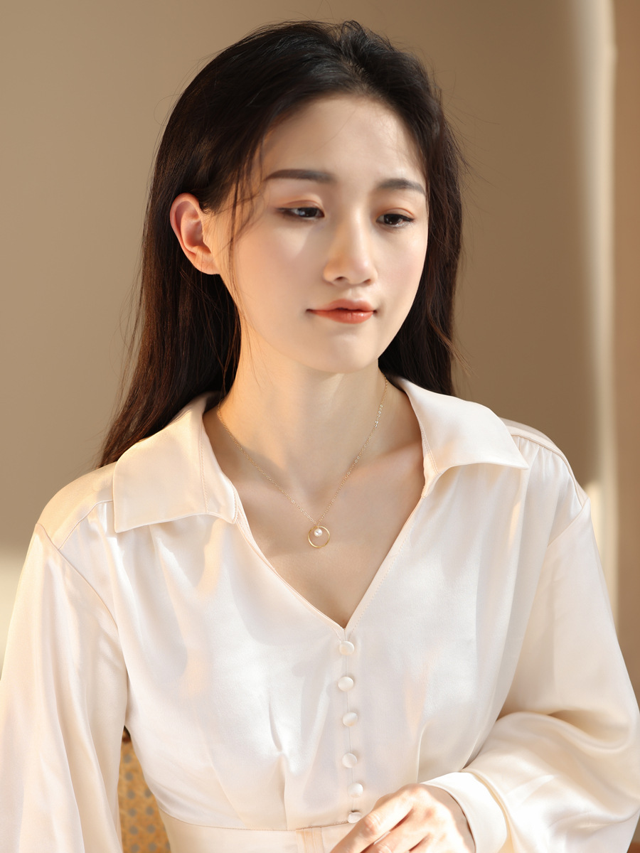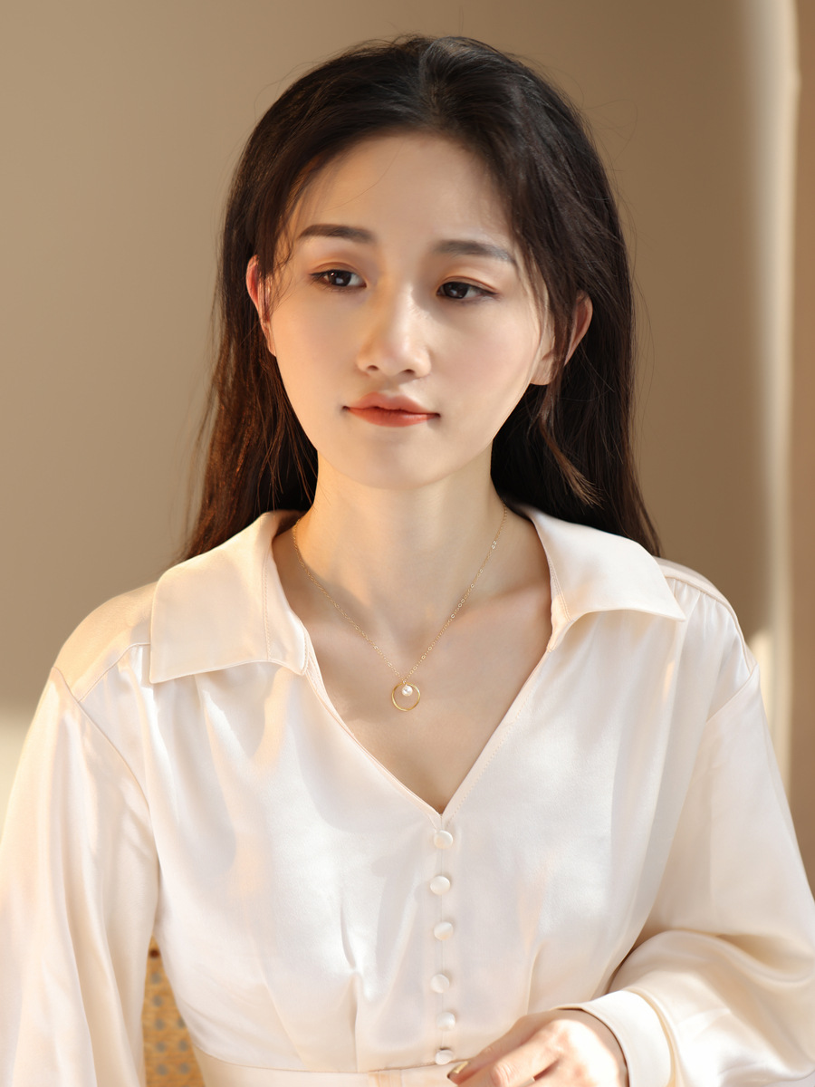 Elegant Pearl 14k Bag Gold Necklace Clavicle Female