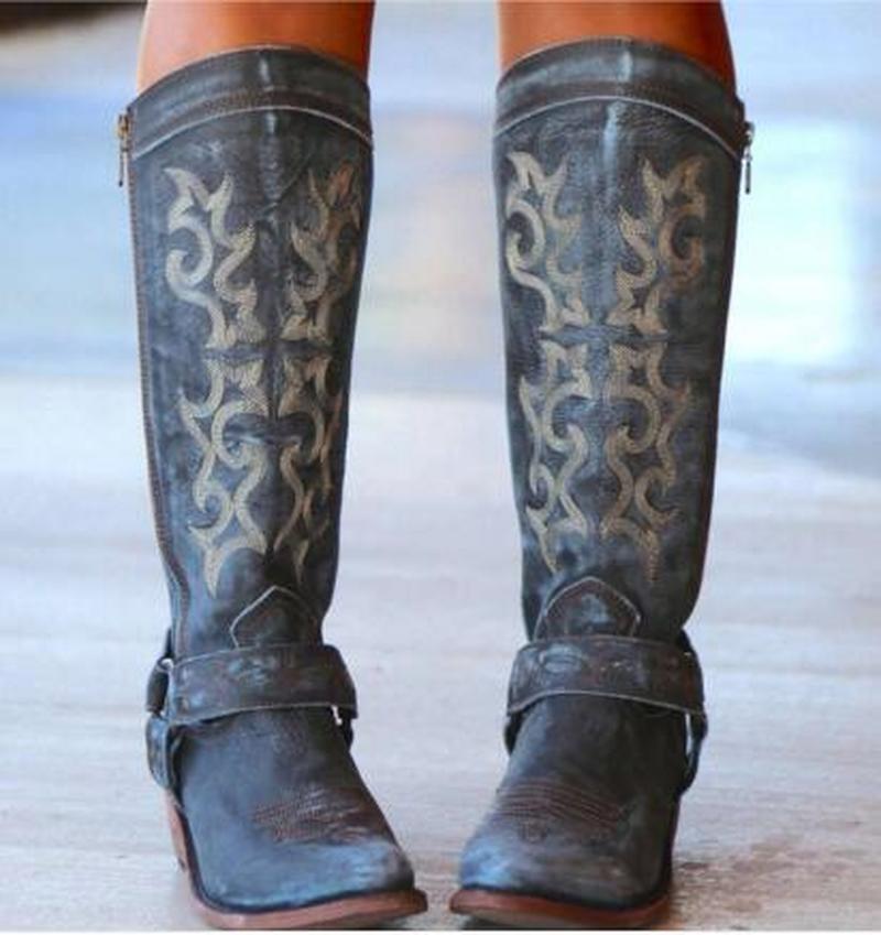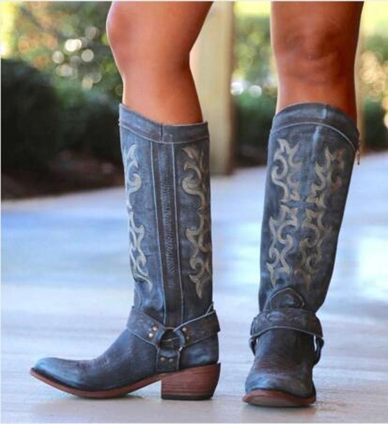 Heel height: middle heel (3-5cm)Fashion shoes: Knight bootsFashion elements: sewing, belt buckleFunction: keep warm