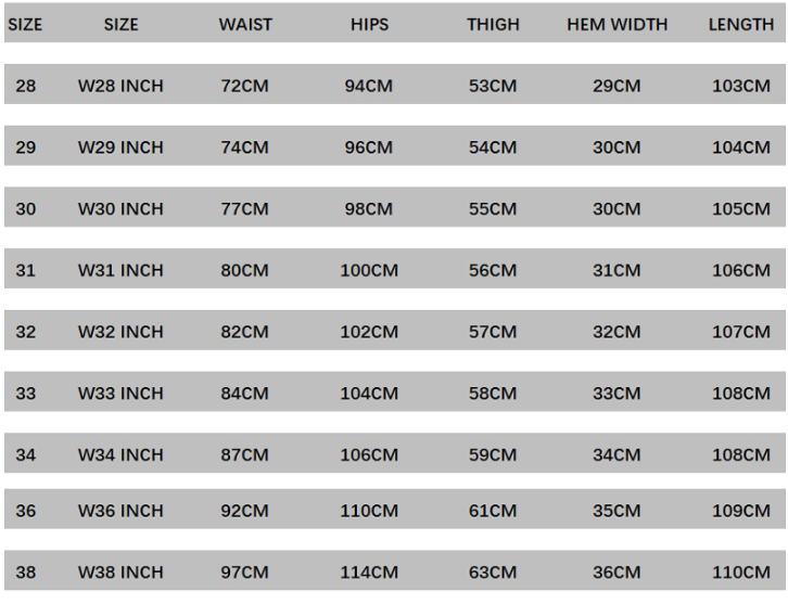Size: 28, 29, 30, 31, 32, 33, 34, 36, 38