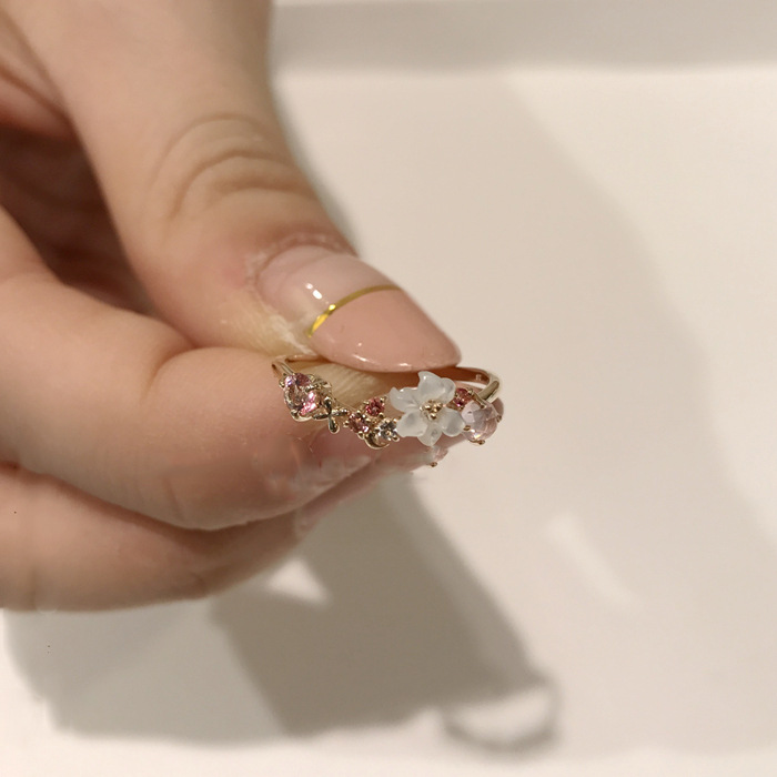 The girl’s pink shell flower ring is in the same series as the previous large garland necklace chain