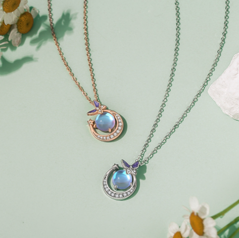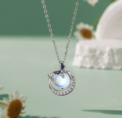 Specification:Category: NecklaceName: Zhuang zhou meng butterfly necklaceMaterial: S925 silver moonstone zirconSize: 12*1 6.4mmChain length: 40+5cmColor: White gold rose goldPacking list:
