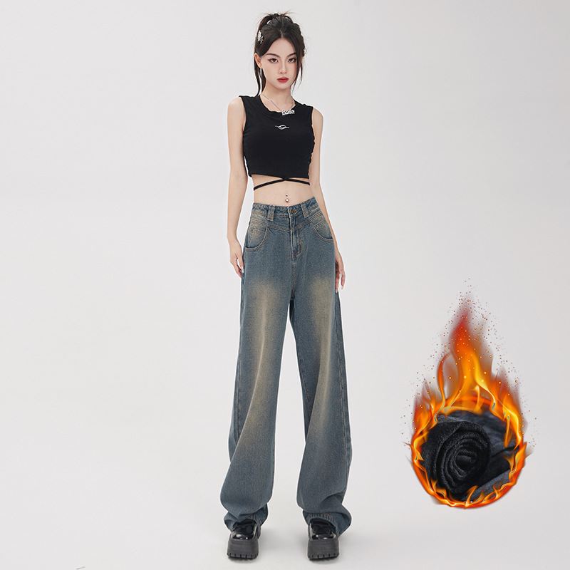 Color: retro blue cropped single, retro blue blue trousers single, retro blue lengthening and thin style, fleece-lined retro blue blue trousers, fleece-lined retro blue plus trousers, fleece-lined retro blue cropped