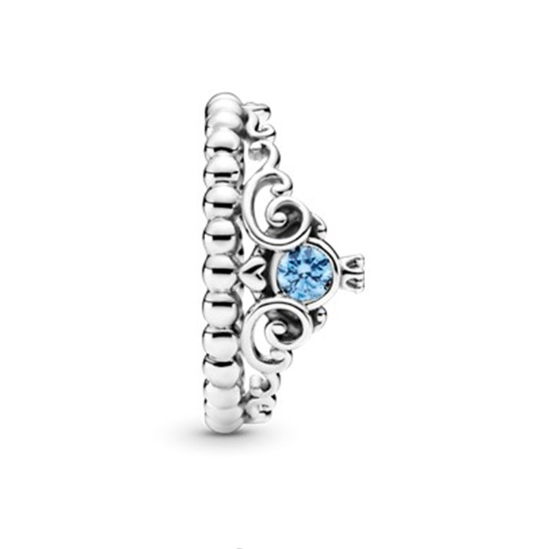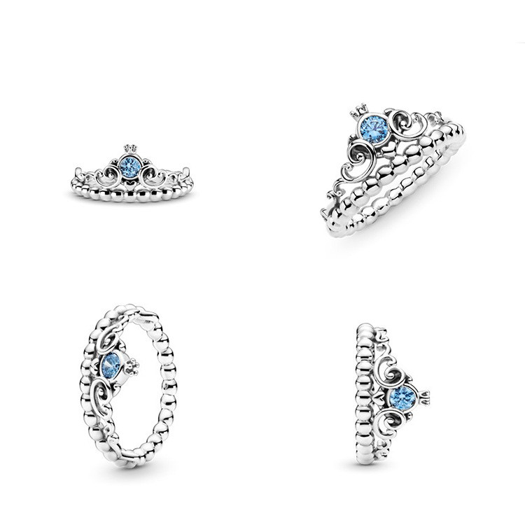 New panjia S925 silver ring fairy shoes 70th anniversary blue crown fashion winter all-match ring