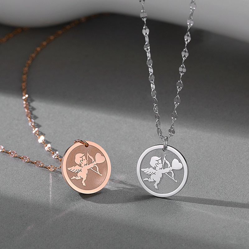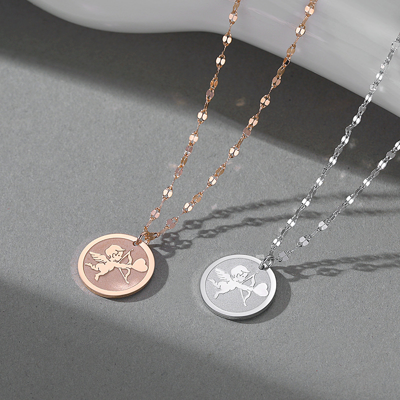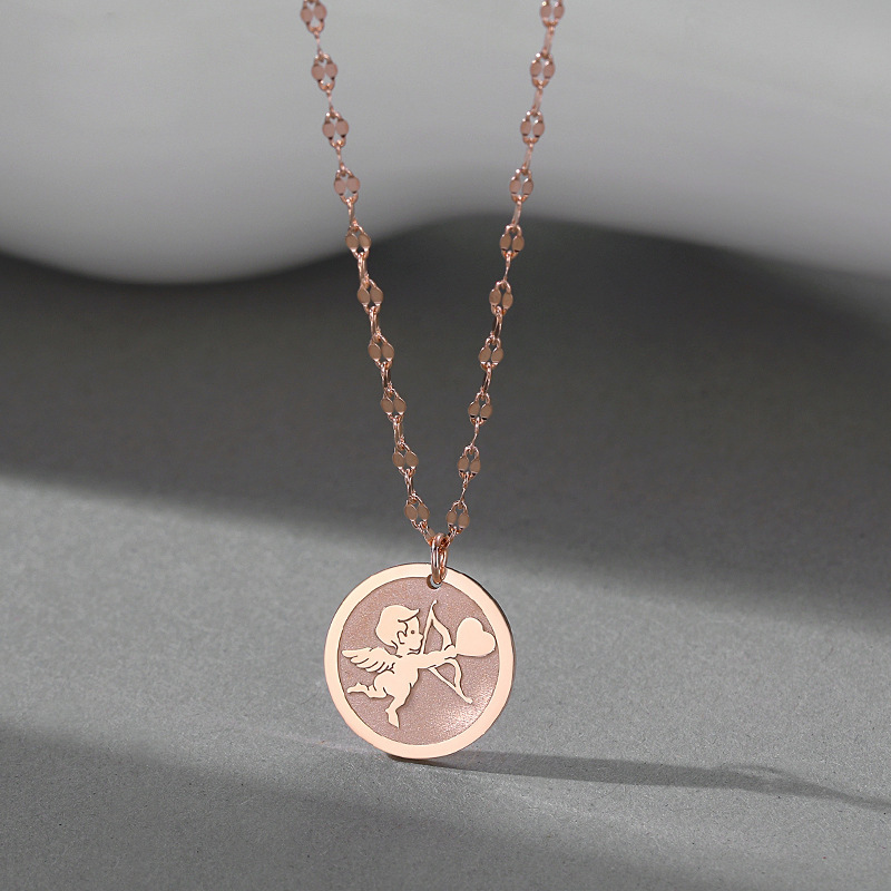Product information:Treatment Process: Electroplating Color: rose gold Cupid necklace, White Gold color Cupid necklace Chain style: lip chain Material: Silver Size: 13.4 * 13.4mm Chain Length: 40 5cm