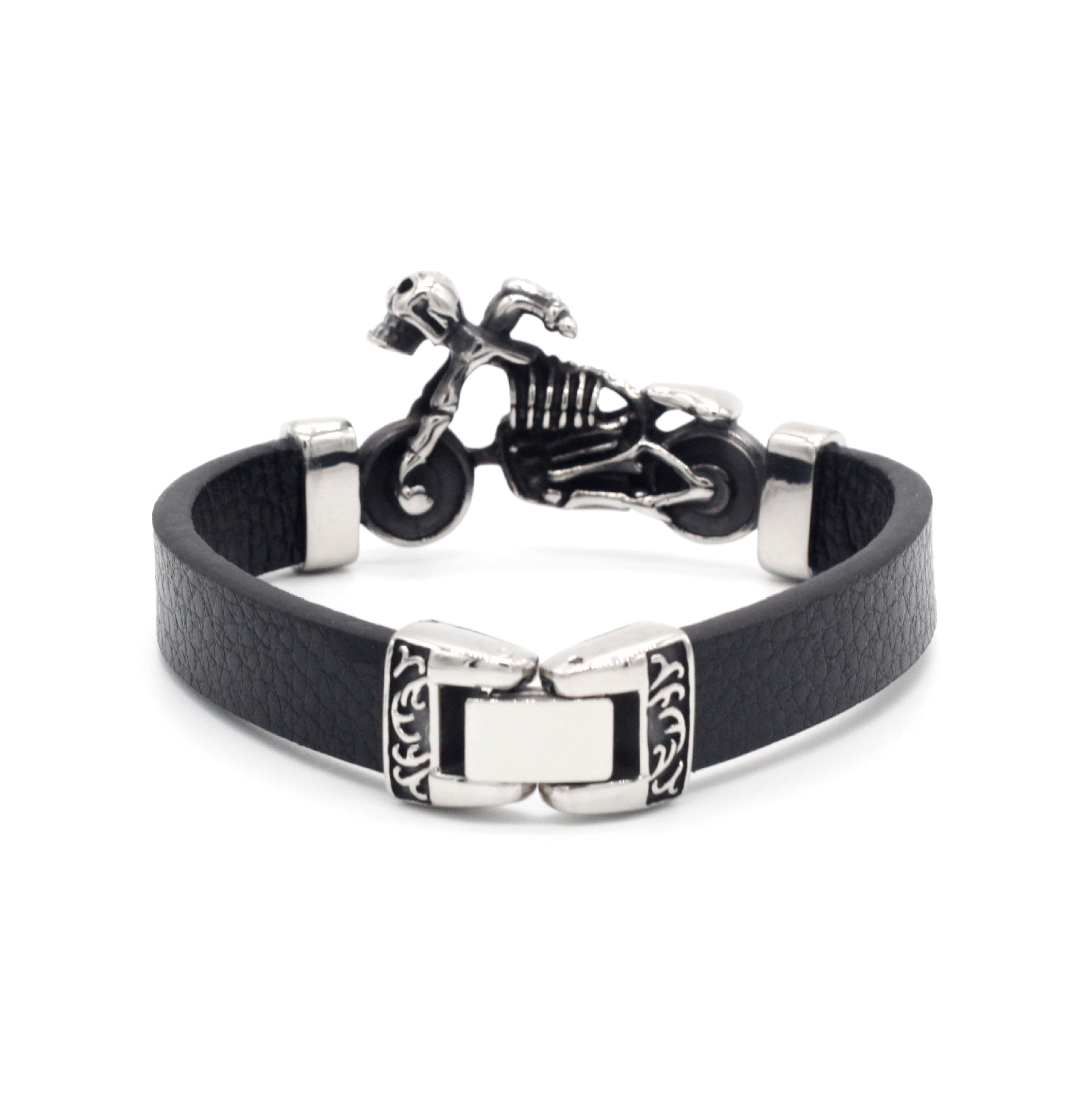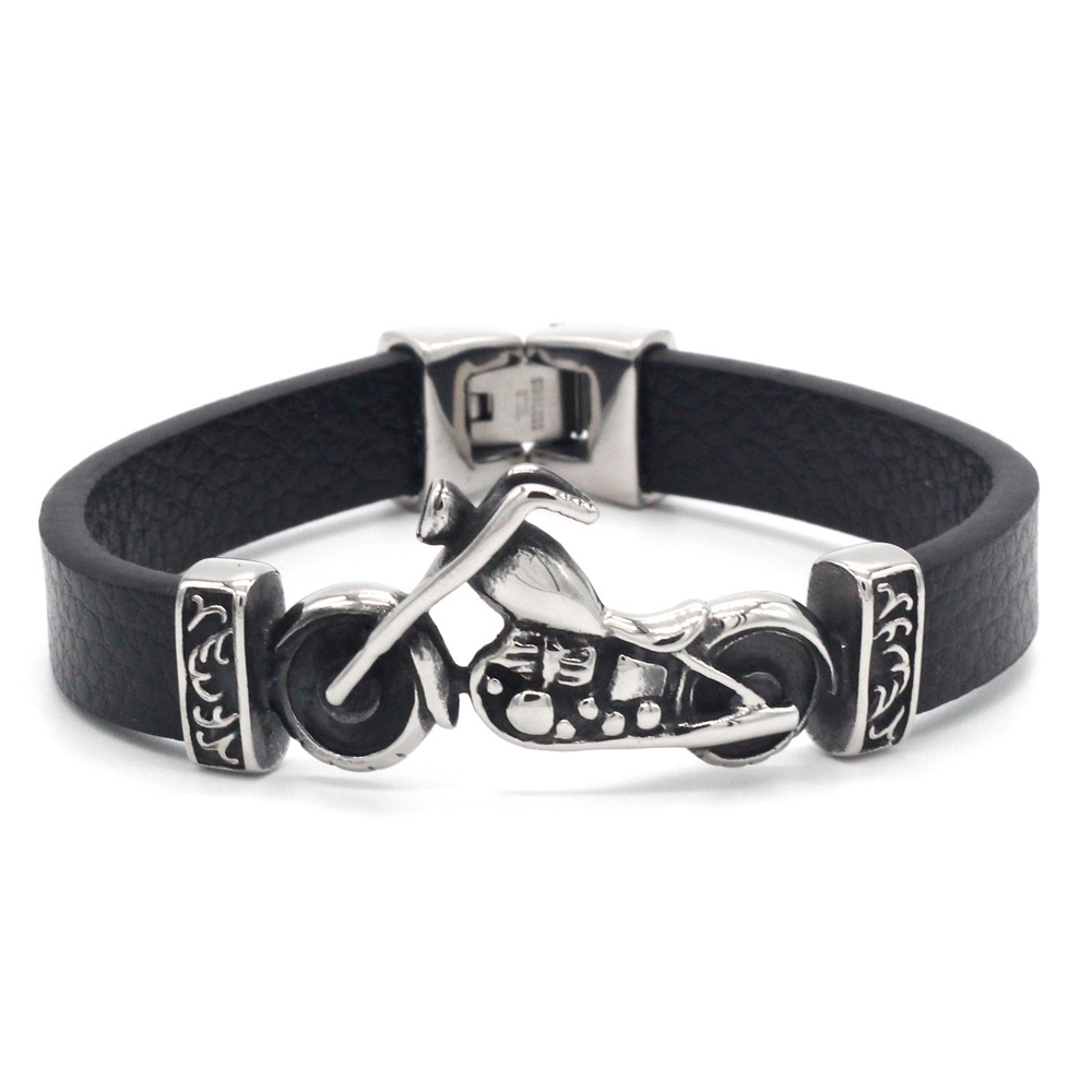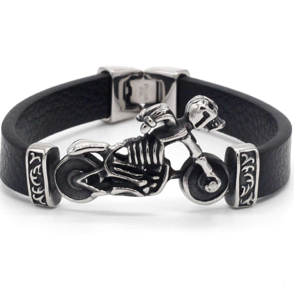 Motorcycle titanium steel leather rope bracelet