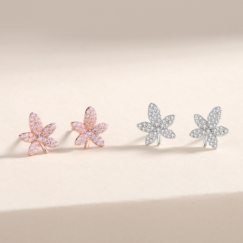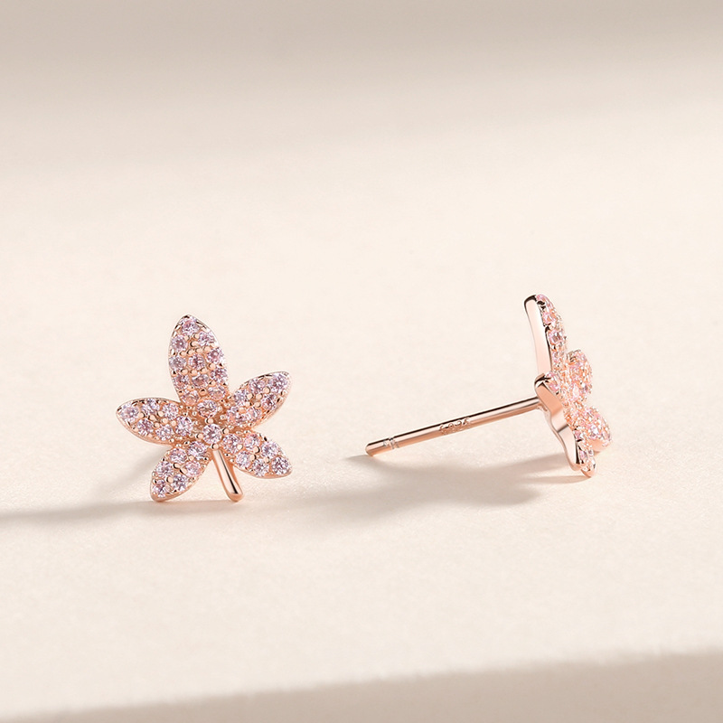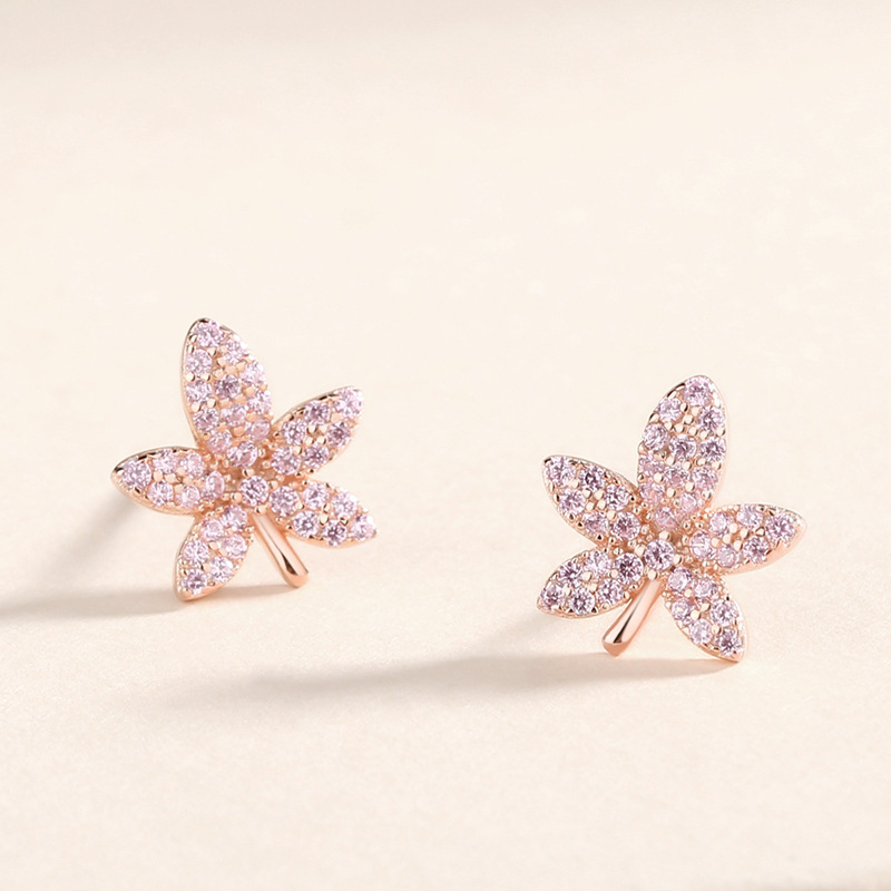 Product information:Color: rose gold pink diamond screw stud earrings, white gold nail stud earrings Material: Silver Shape: Leaf Size: 10.5x10.9mm