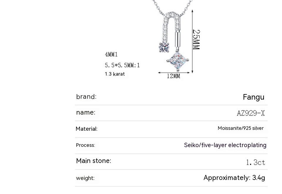 Color: 1.3 karat moissanite, 5. 5mm zircon