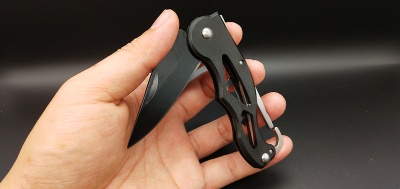 Full Length:16cmBlade length: 6cmHandle length: 8.5cmBlade width:2.0cmBlade thickness:2mmMaterial: 440CHardness:55HRCKnife handle:stainless steel ABS BlackColor: Black Black Blade