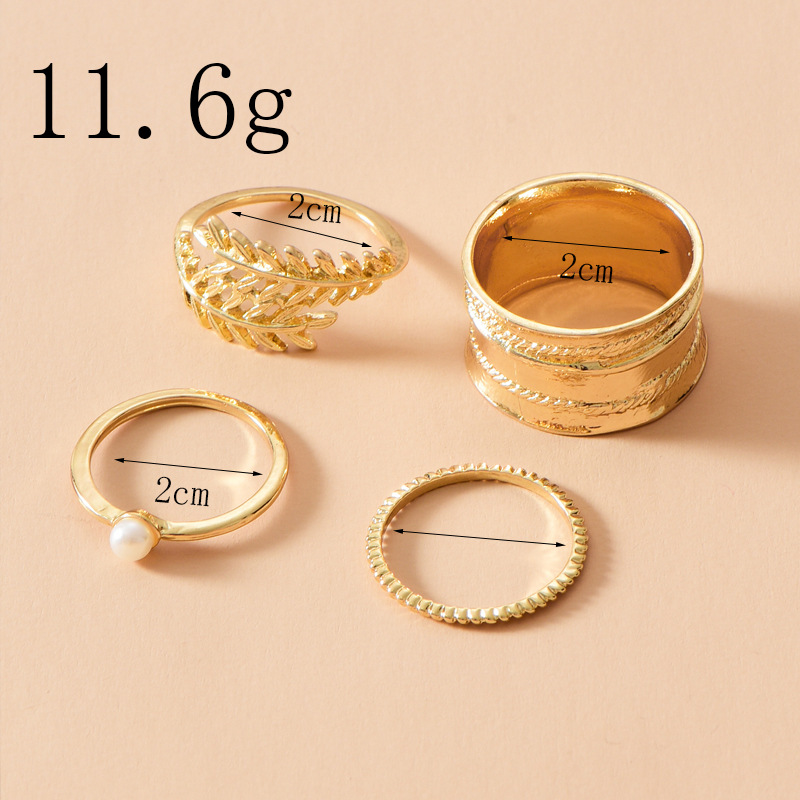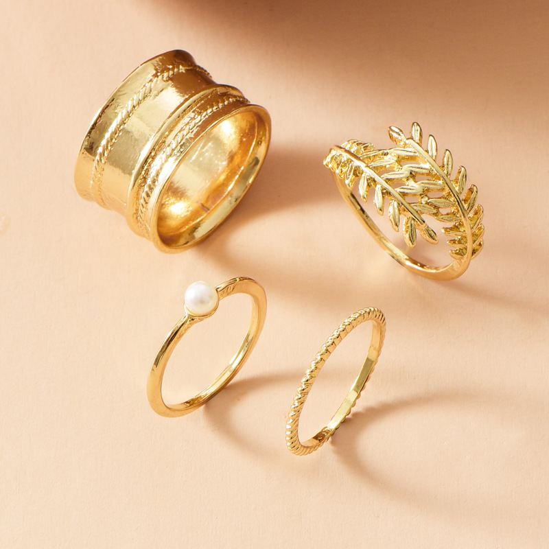 Amazon Hot Sale Hot Sale Fashion Gold-Plated Leaf Pearl Ring Set, Ladies Street Shooting Wild Ring Women