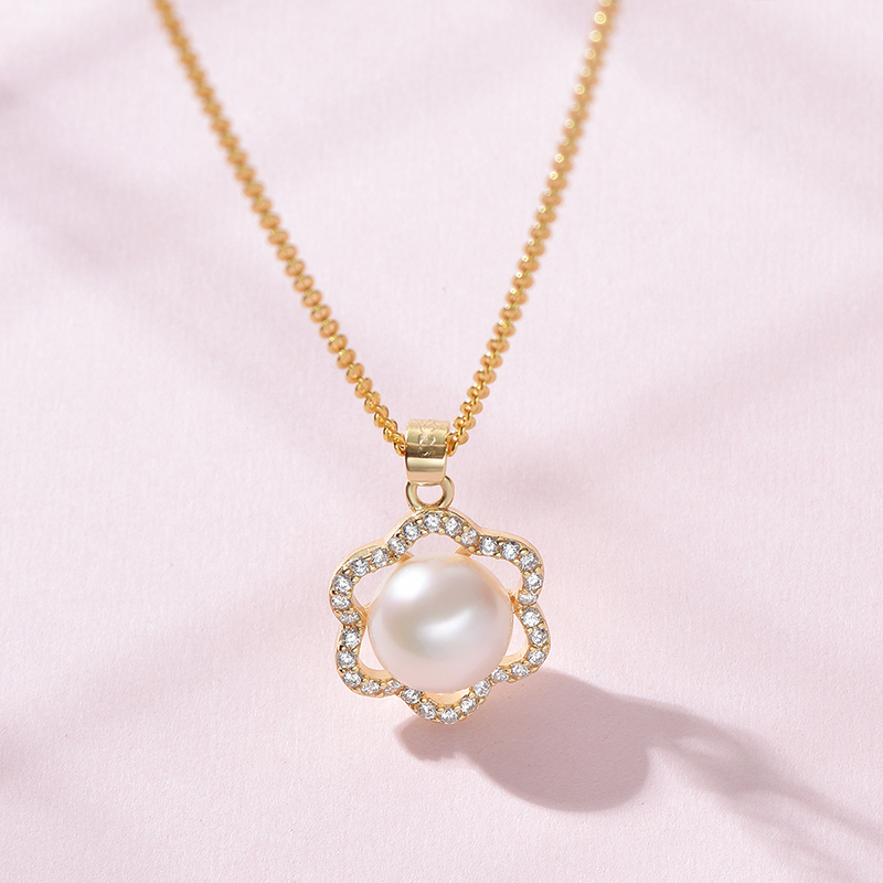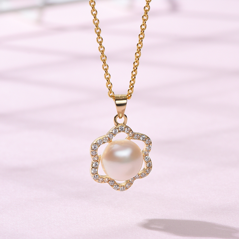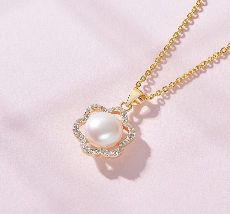 Size: Pendant Height about 2.0cm, width about 1.3cm, pearl size 8-9mm; chain length 40+5cm