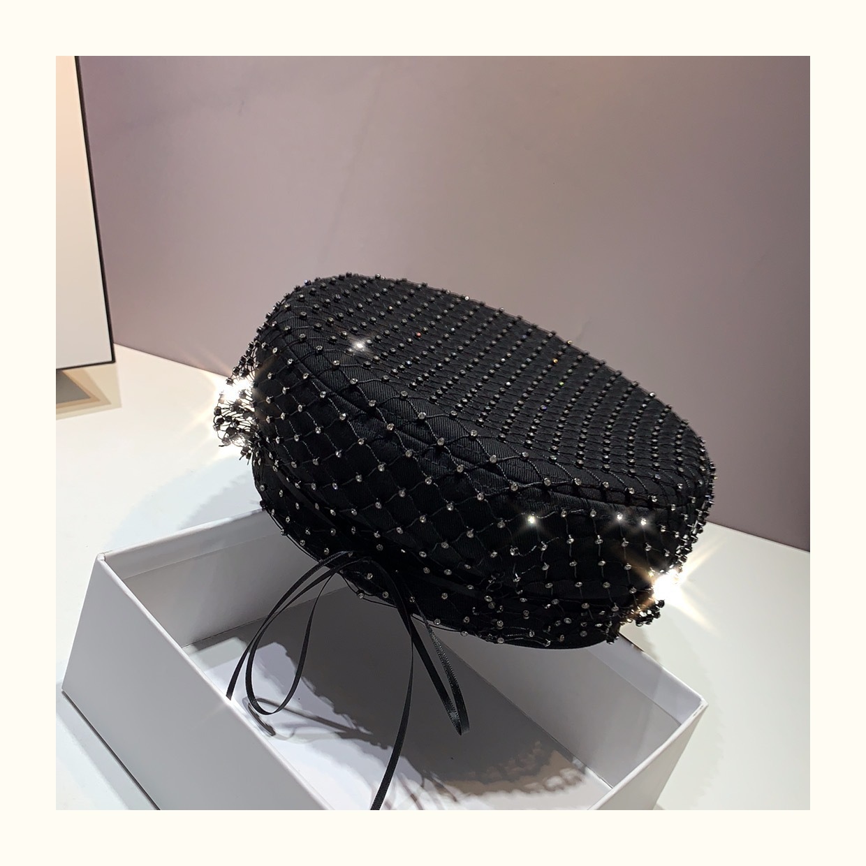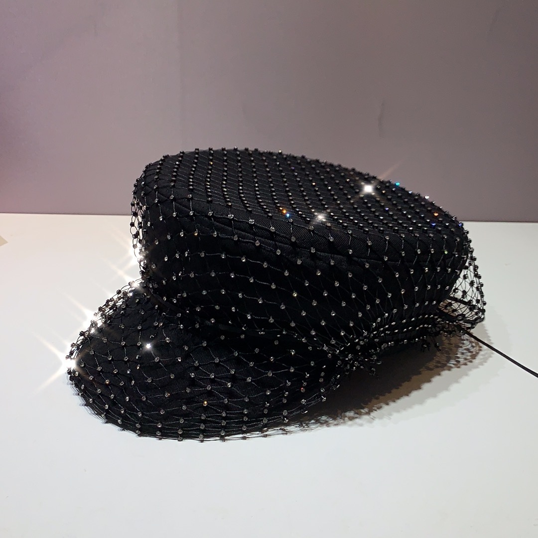 Heavy Embroidery Hot Drilling Mesh Black Navy Hat