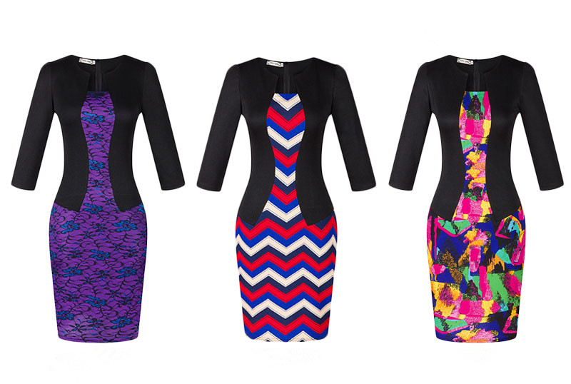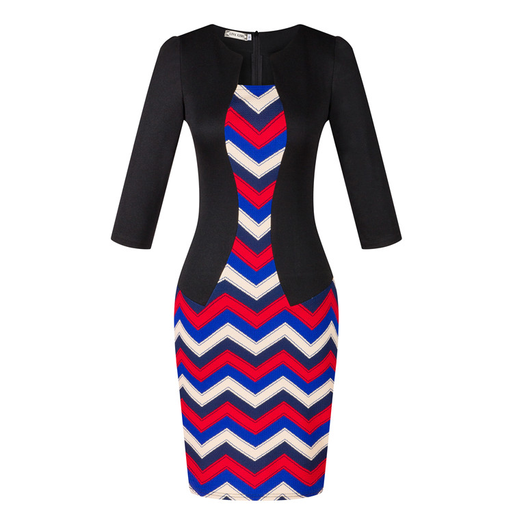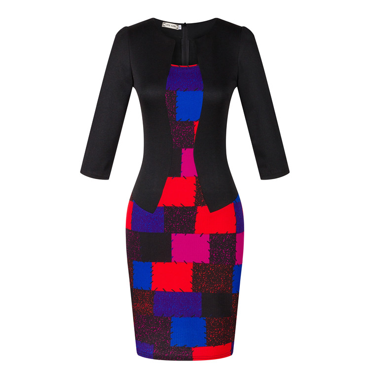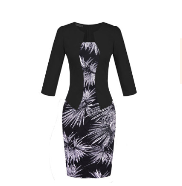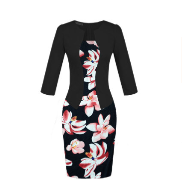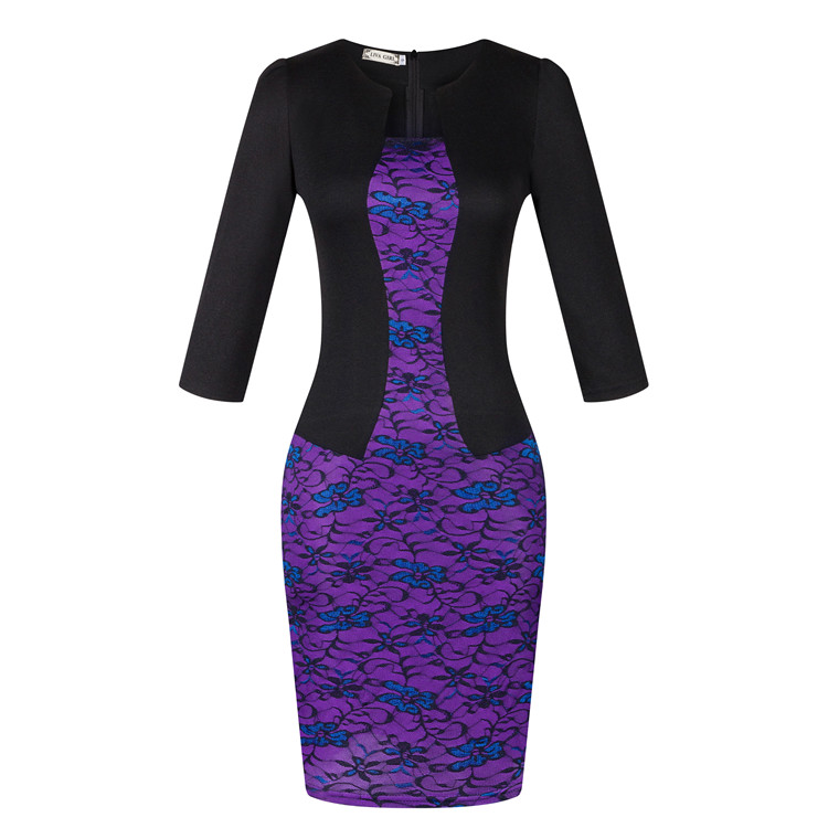 USA SIZE Seven-point sleeve dress fake two-piece professional dress lace bag hip pencil skirt to send belt