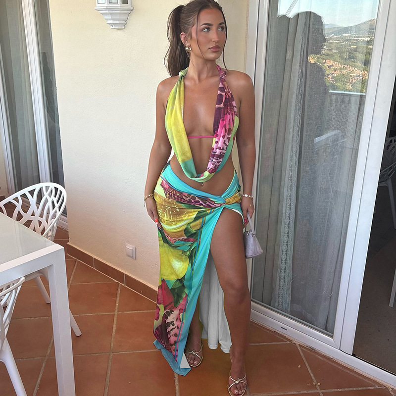 Product information: Color: Colorful Main fabric composition: Polyester (polyester fiber) Size: S,M,L Skirt length: long skirt Sleeve length: sleeveless Style: European and American style