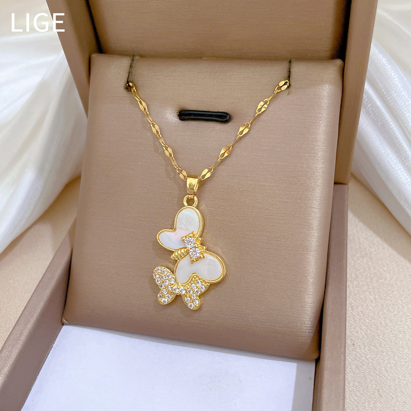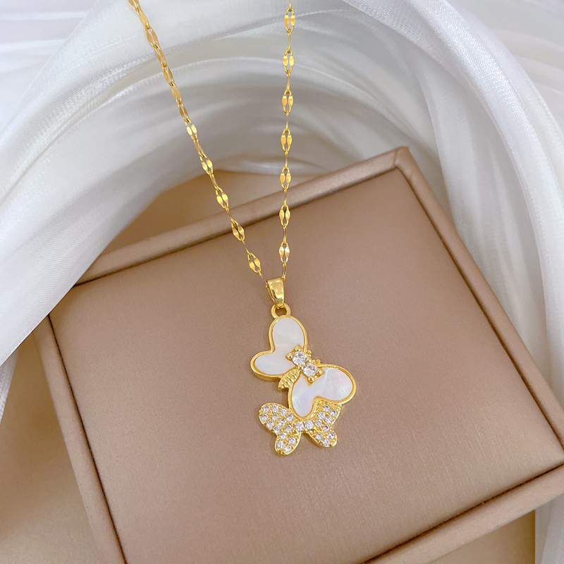 Color: A524 titanium steel chain copper micro inlaid pendant